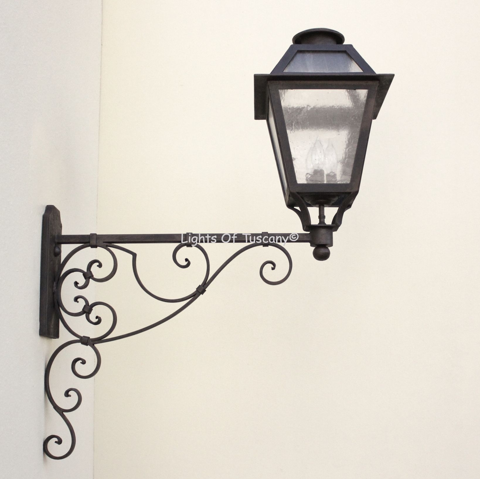 This beautiful hand crafted outdoor wall light is made of all authentic hand forged wrought iron. All our fixtures are hand painted and available in any of our finish options. This fixture is perfect for garage lighting, outdoor walls, backyard and patio lighting.