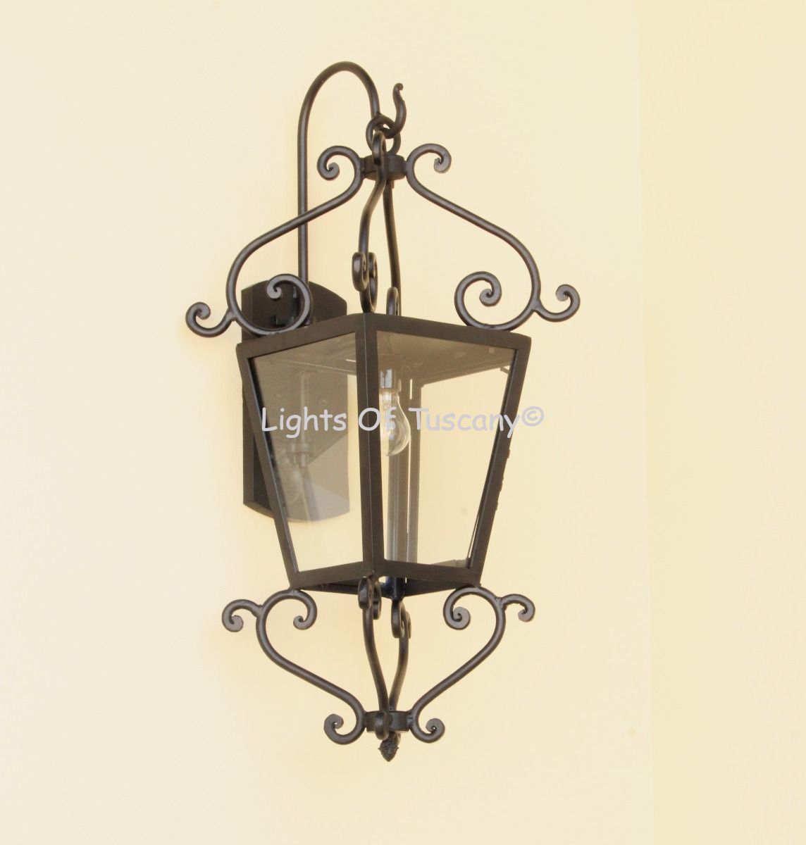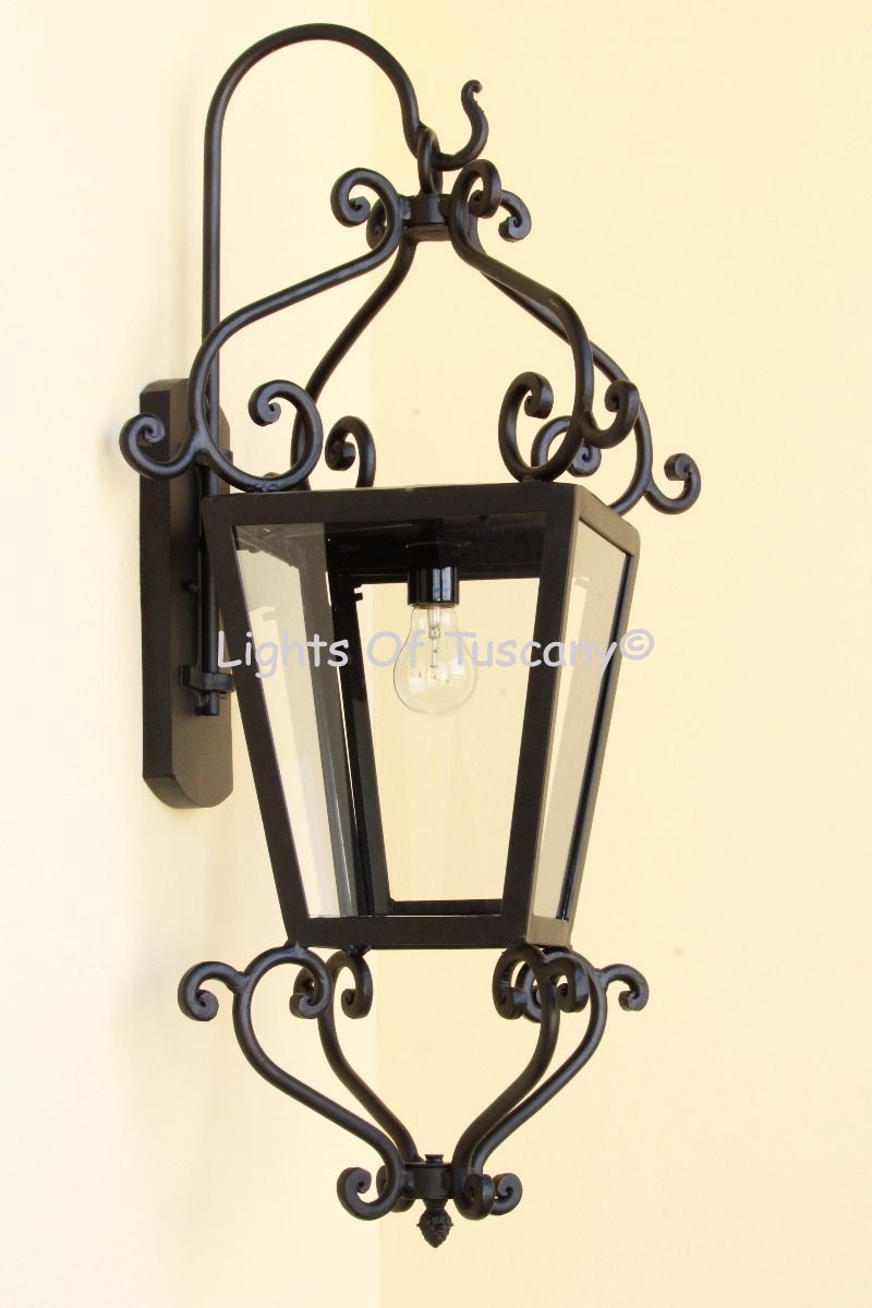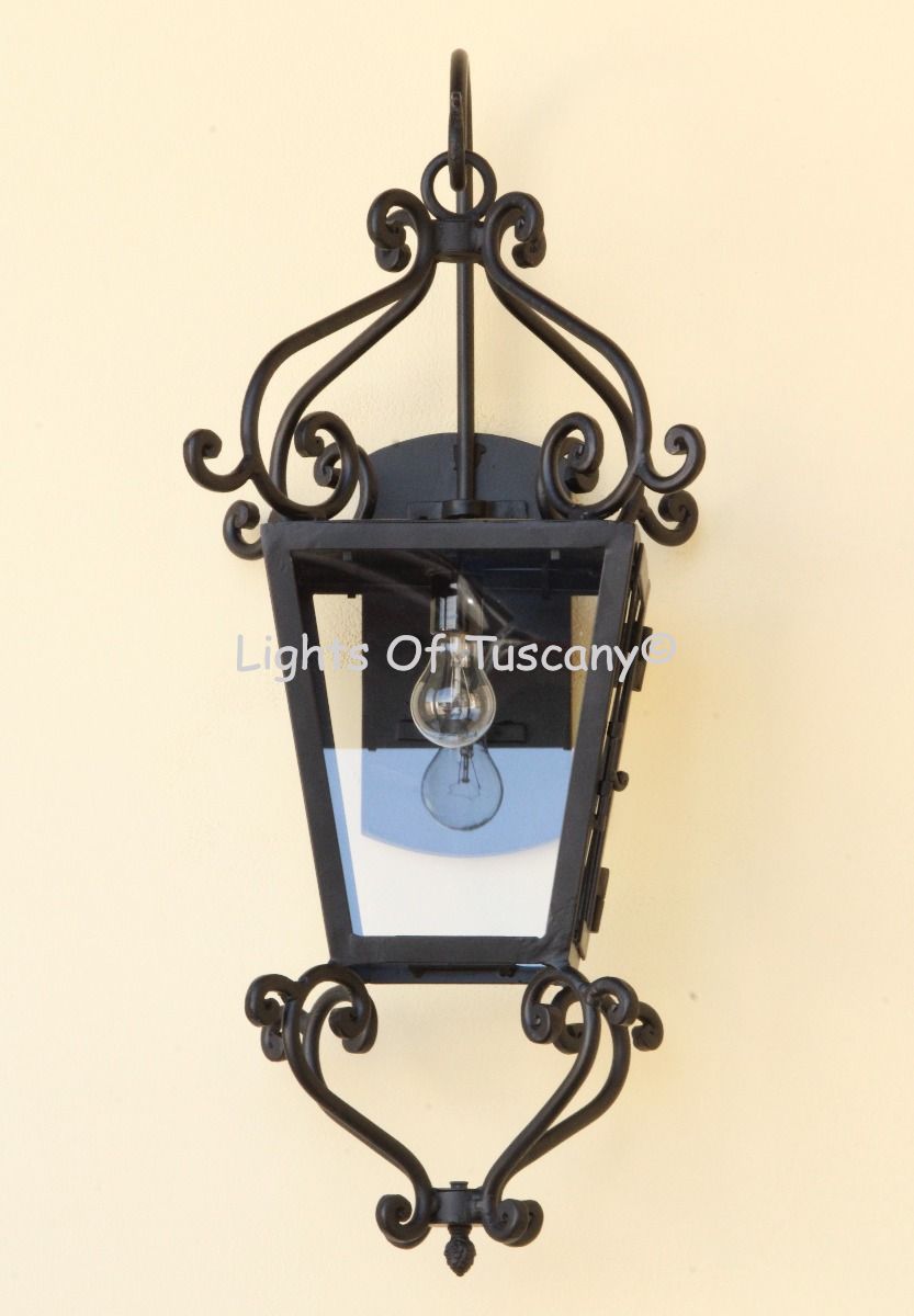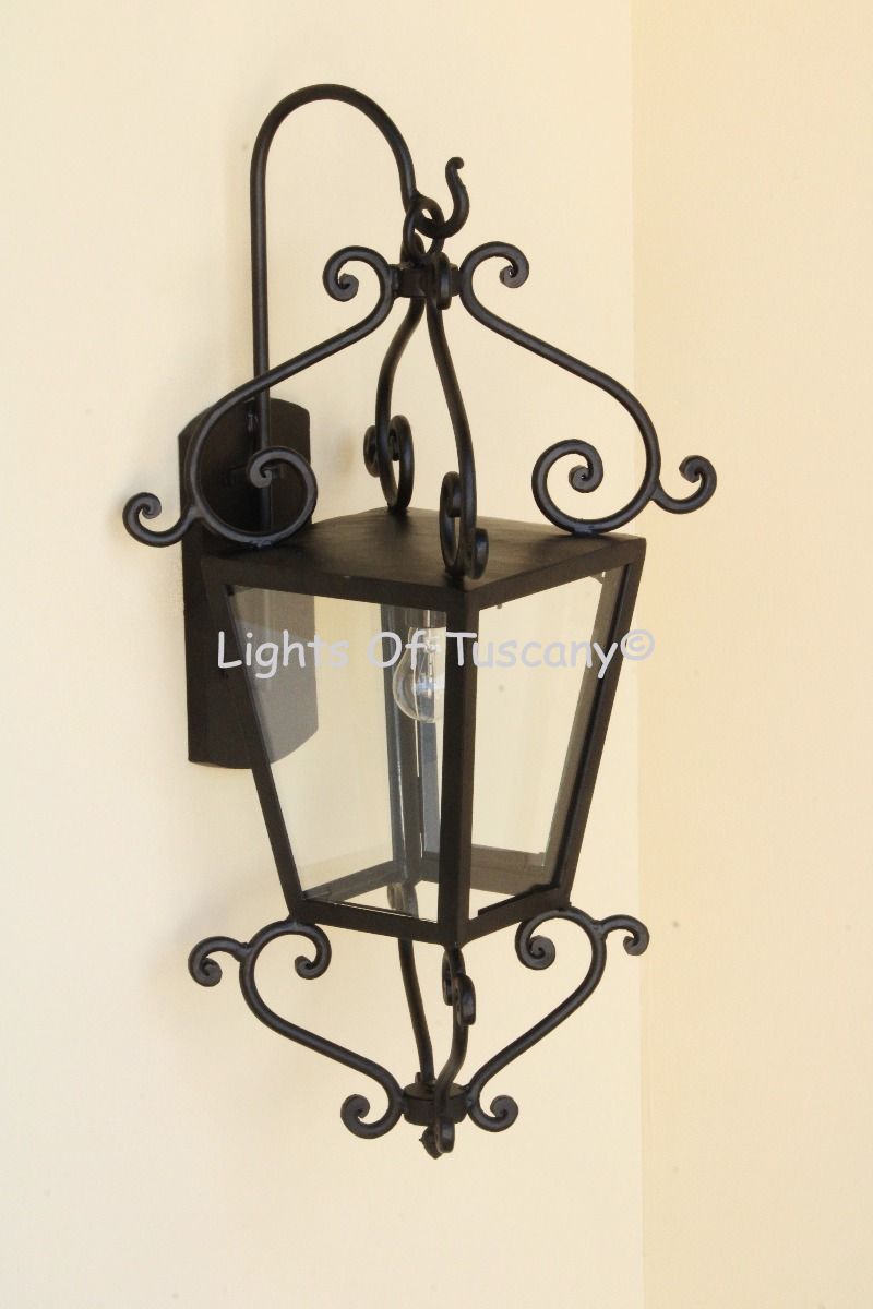 This beautiful hand crafted outdoor wall light is made of all authentic hand forged wrought iron. All our fixtures are hand painted and available in any of our finish options. This fixture is perfect for garage lighting, outdoor walls, backyard and patio lighting.