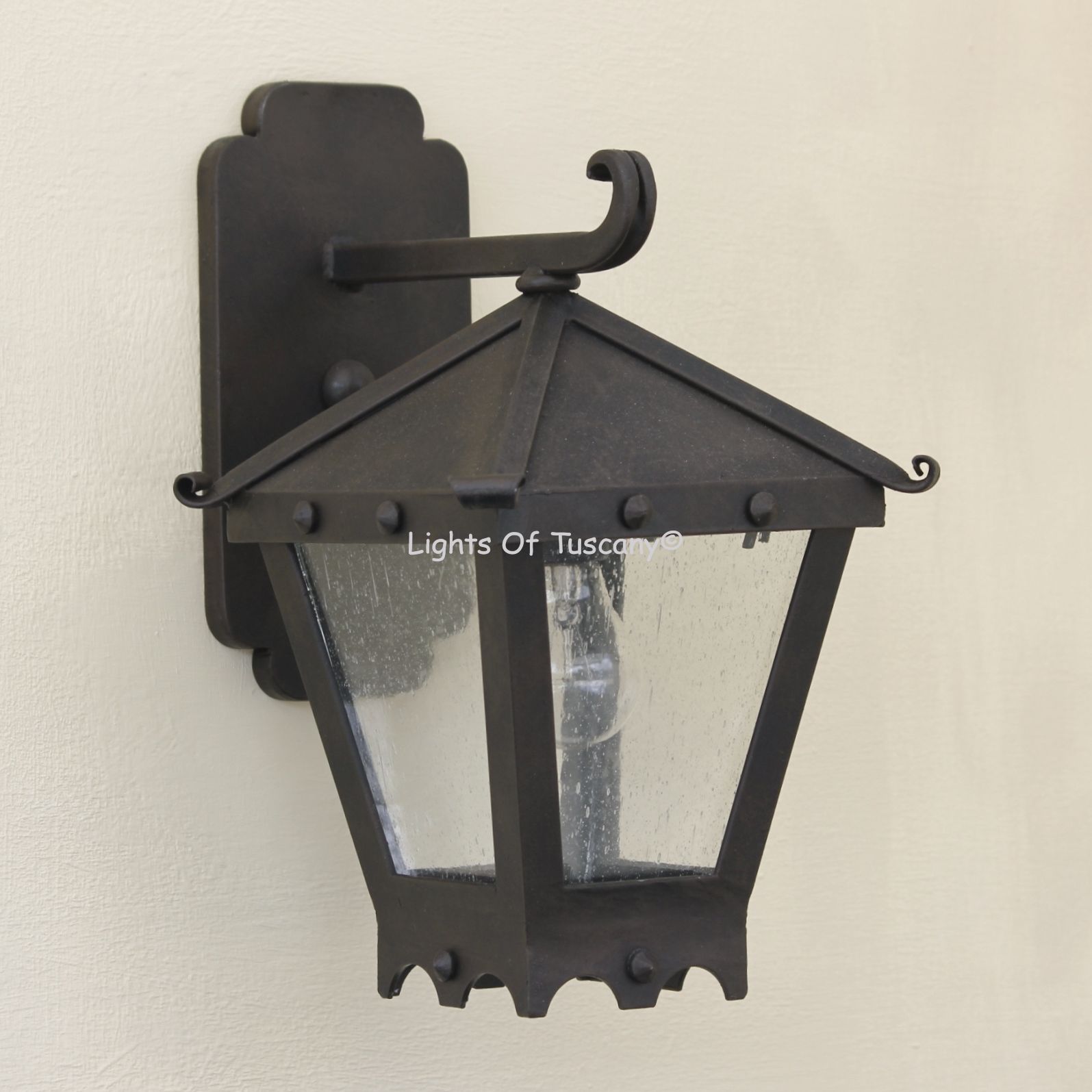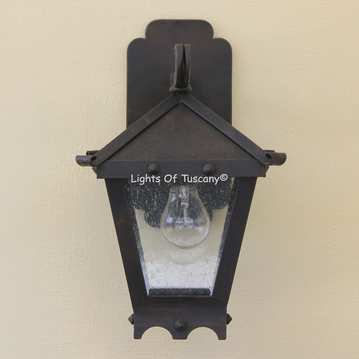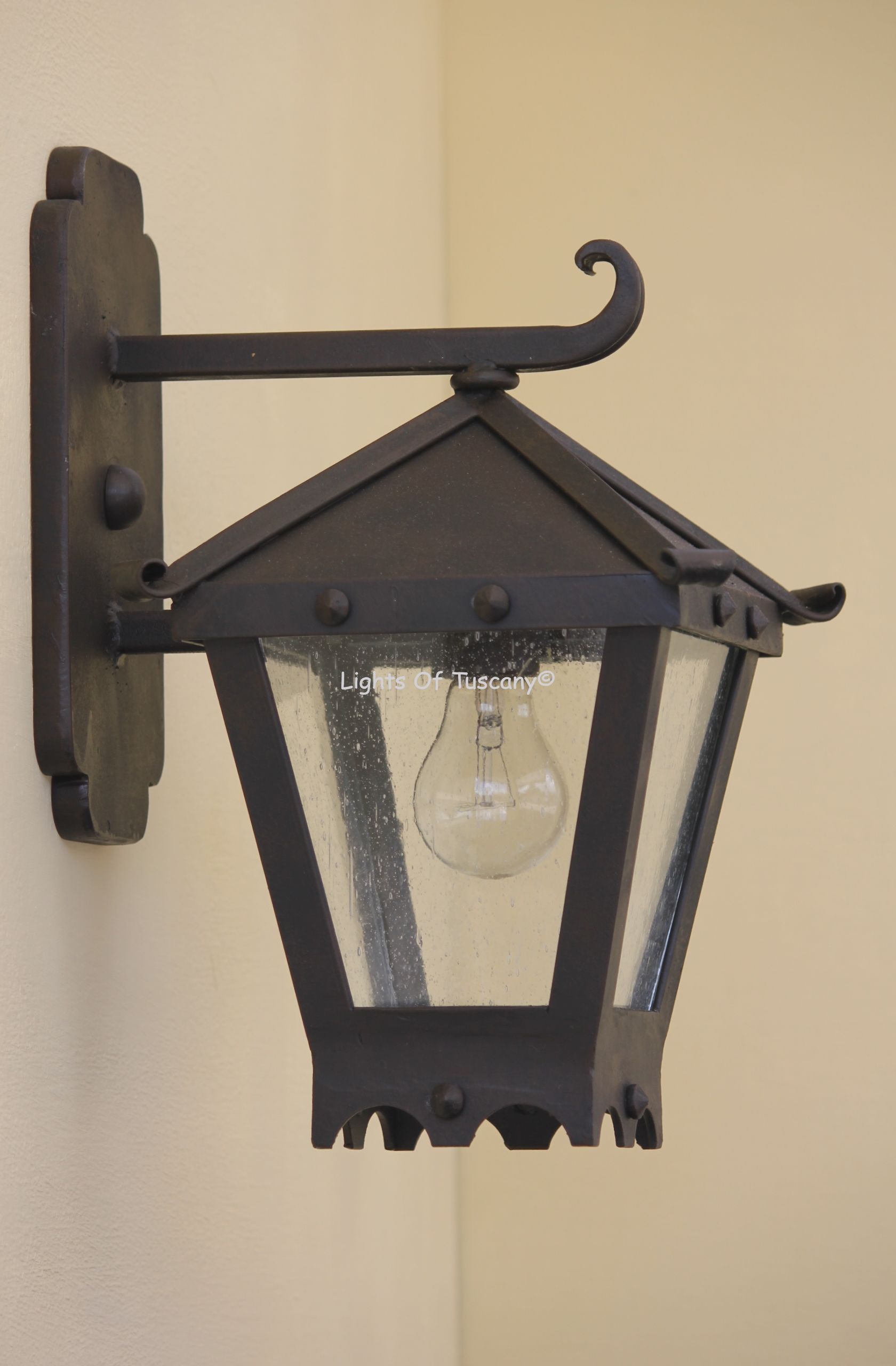 This beautiful hand crafted outdoor wall light is made of all authentic hand forged wrought iron. All our fixtures are hand painted and available in any of our finish options. This fixture is perfect for garage lighting, outdoor walls, backyard and patio lighting.