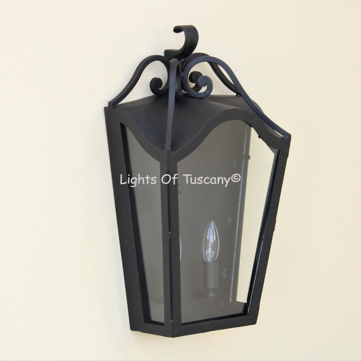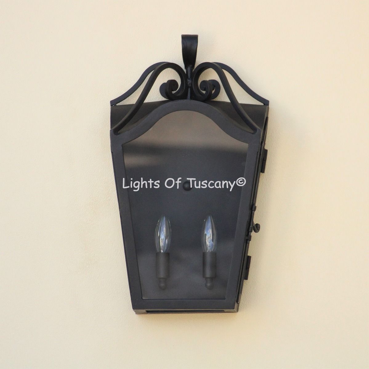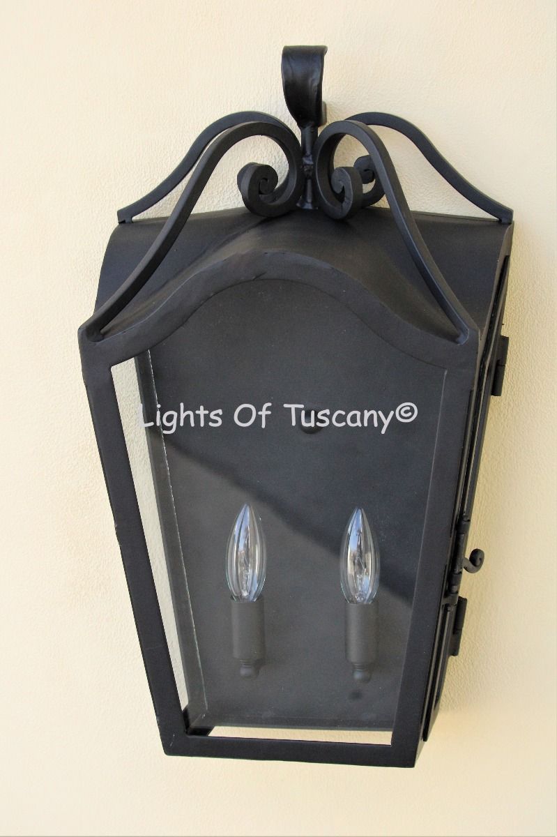 This beautiful hand crafted outdoor wall light is made of all authentic hand forged wrought iron. All our fixtures are hand painted and available in any of our finish options. This fixture is perfect for garage lighting, outdoor walls, backyard and patio lighting.