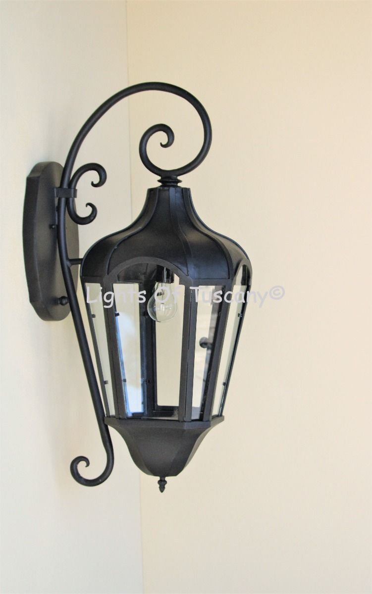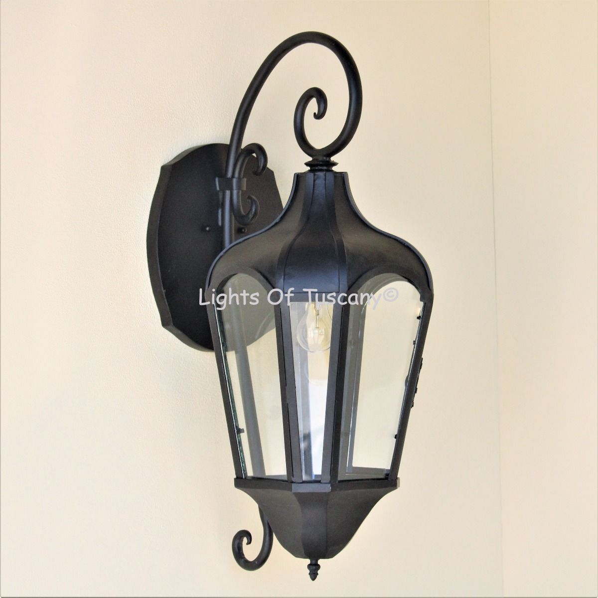 This beautiful hand crafted outdoor wall light is made of all authentic hand forged wrought iron. All our fixtures are hand painted and available in any of our finish options. This fixture is perfect for garage lighting, outdoor walls, backyard and patio lighting.