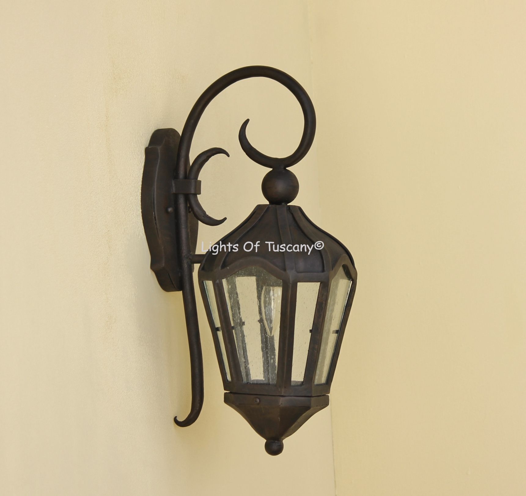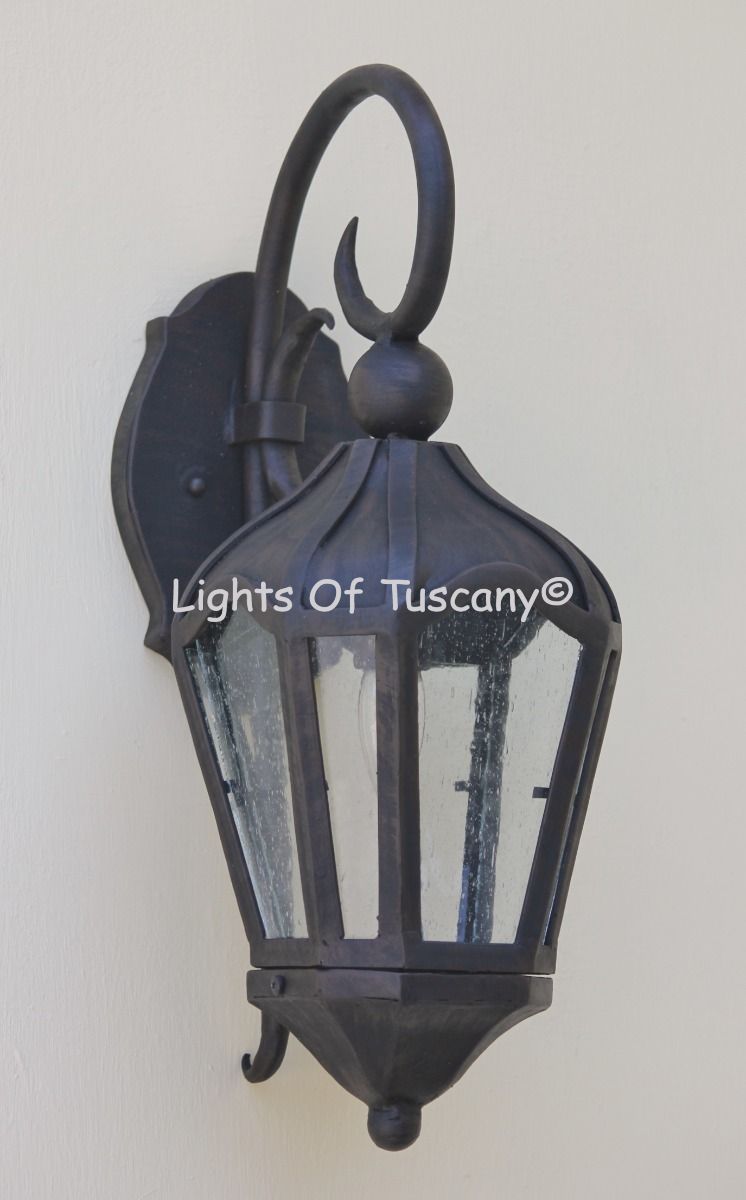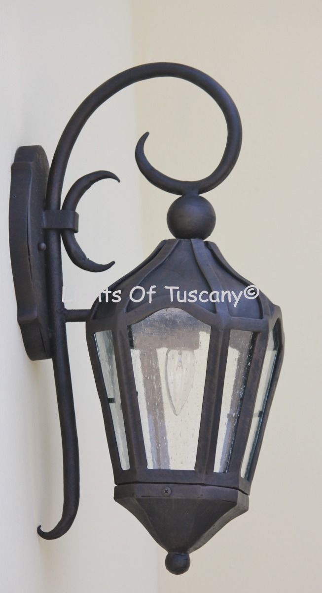 This beautiful hand crafted outdoor wall light is made of all authentic hand forged wrought iron. All our fixtures are hand painted and available in any of our finish options. This fixture is perfect for garage lighting, outdoor walls, backyard and patio lighting.