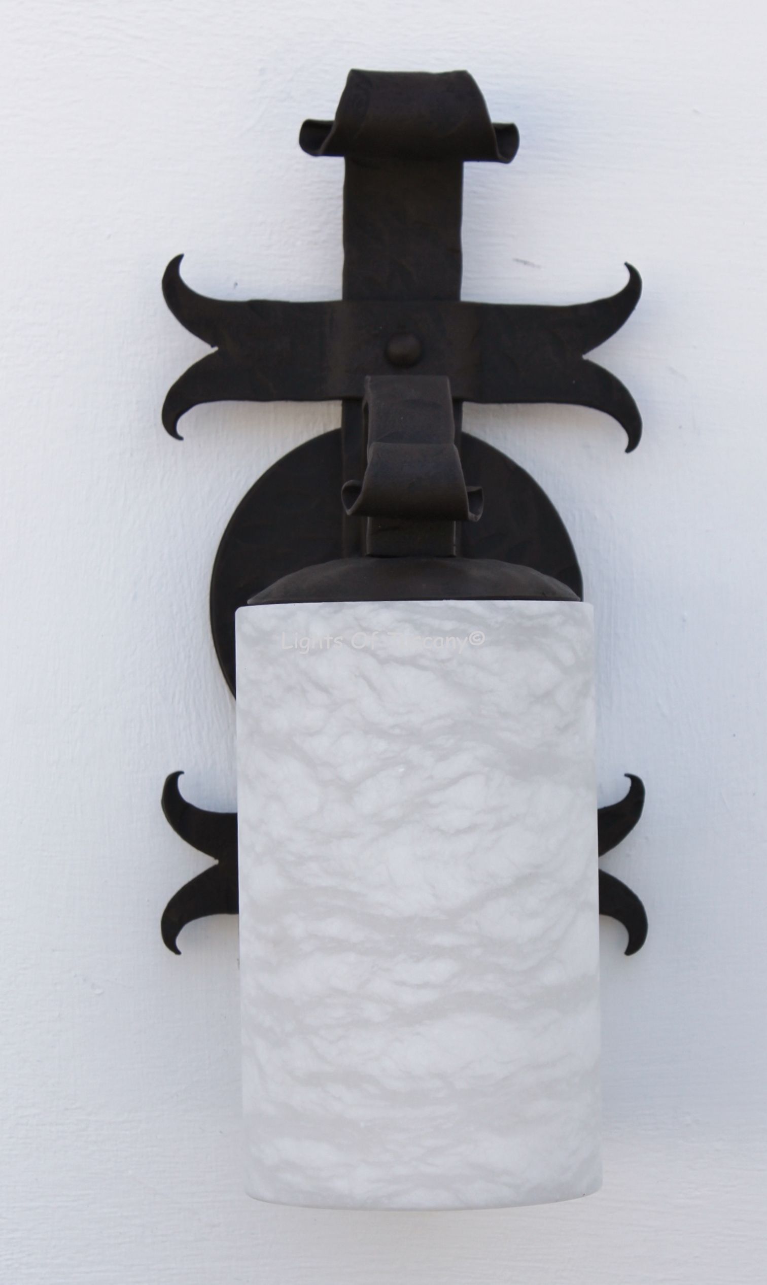 This beautiful hand crafted outdoor wall light is made of all authentic hand forged wrought iron. All our fixtures are hand painted and available in any of our finish options. This fixture is perfect for garage lighting, outdoor walls, backyard and patio lighting.