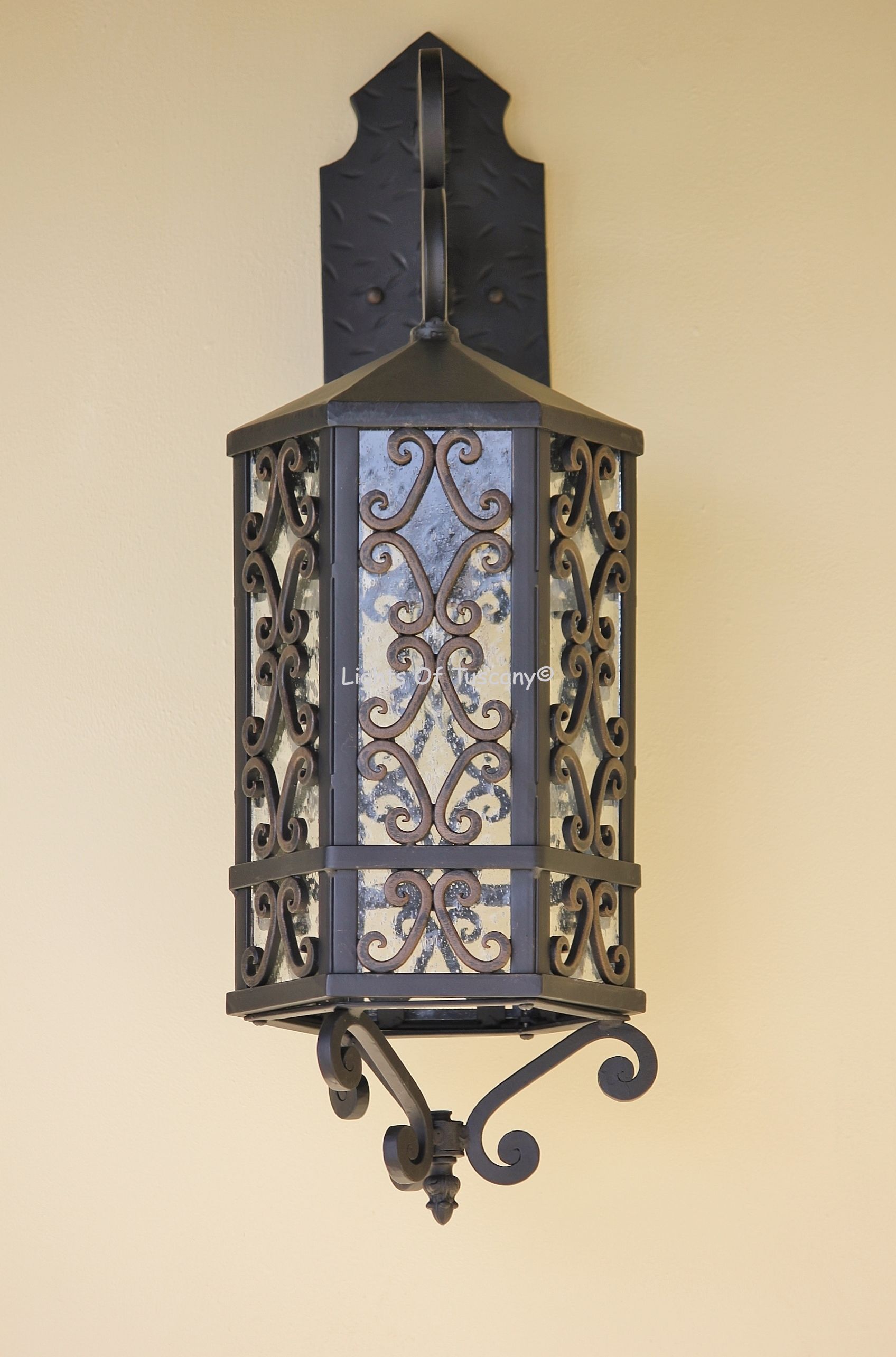 This beautiful hand crafted outdoor wall light is made of all authentic hand forged wrought iron. All our fixtures are hand painted and available in any of our finish options. This fixture is perfect for garage lighting, outdoor walls, backyard and patio lighting.