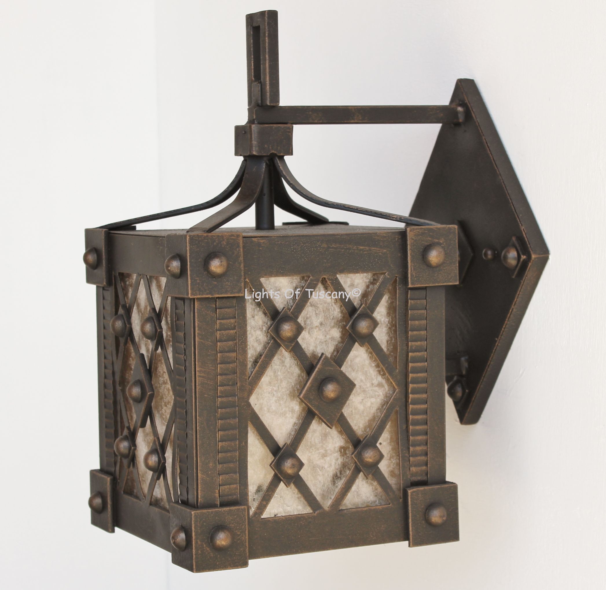 This beautiful hand crafted outdoor wall light is made of all authentic hand forged wrought iron. All our fixtures are hand painted and available in any of our finish options. This fixture is perfect for garage lighting, outdoor walls, backyard and patio lighting.