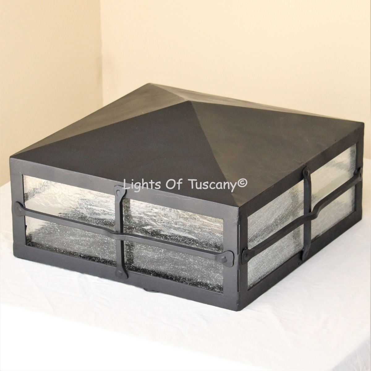 This beautiful hand crafted outdoor post light is made of all authentic hand forged wrought iron. All our fixtures are hand painted and available in any of our finish options. Available for installation on posts and columns. Please see details below.