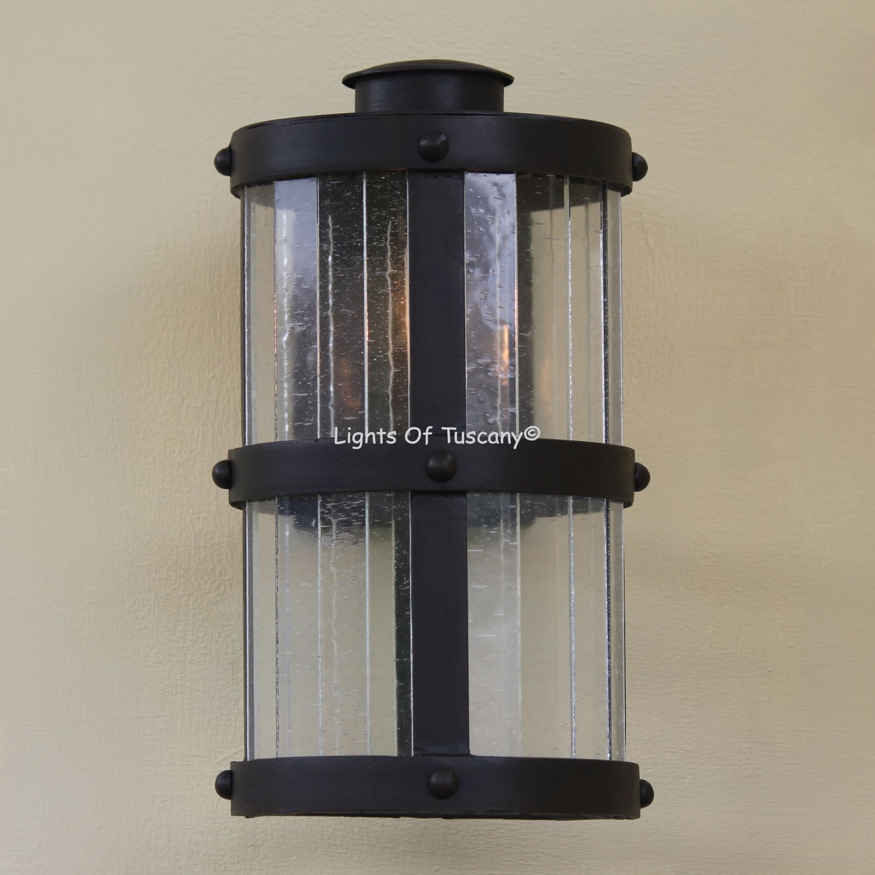 This beautiful hand crafted outdoor wall light is made of all authentic hand forged wrought iron. All our fixtures are hand painted and available in any of our finish options. This fixture is perfect for garage lighting, outdoor walls, backyard and patio lighting.