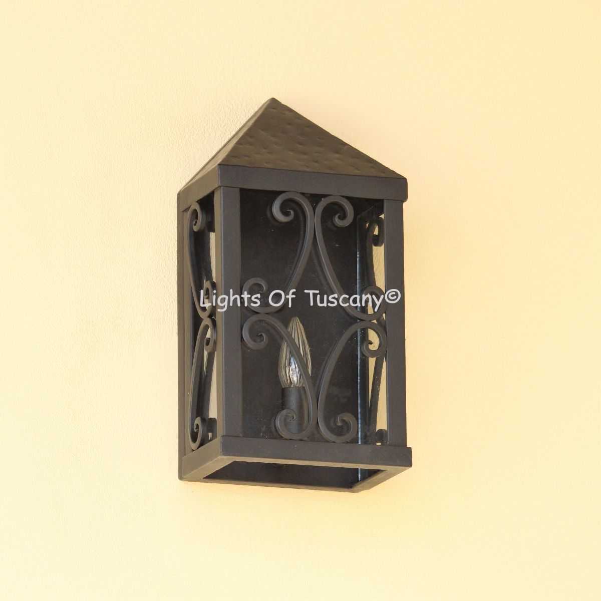This beautiful hand crafted outdoor wall light is made of all authentic hand forged wrought iron. All our fixtures are hand painted and available in any of our finish options. This fixture is perfect for garage lighting, outdoor walls, backyard and patio lighting.