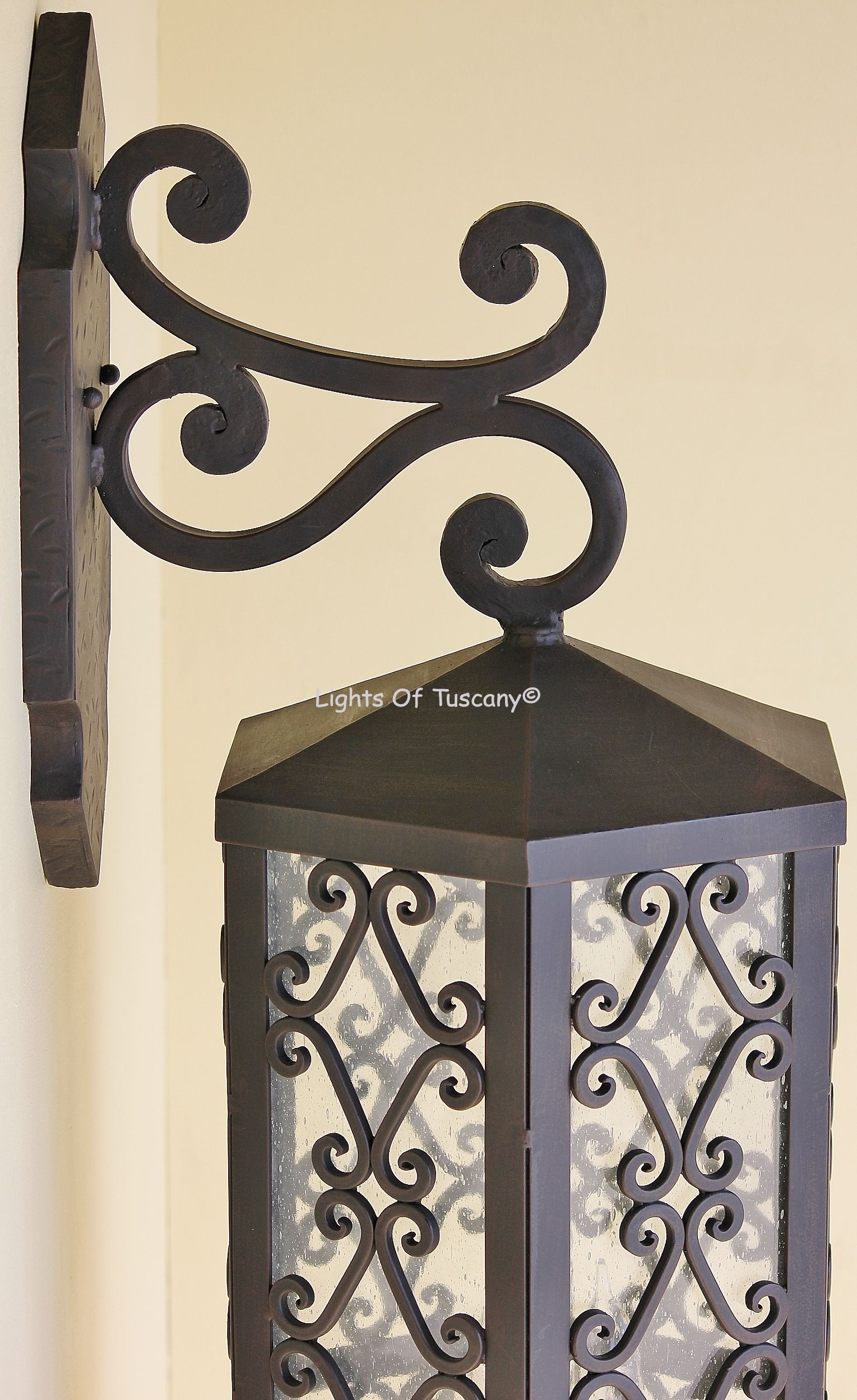 This beautiful hand crafted outdoor wall light is made of all authentic hand forged wrought iron. All our fixtures are hand painted and available in any of our finish options. This fixture is perfect for garage lighting, outdoor walls, backyard and patio lighting.