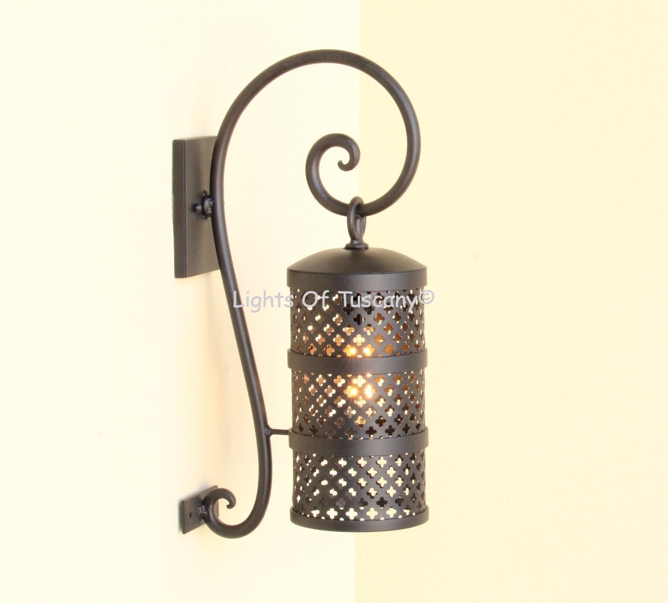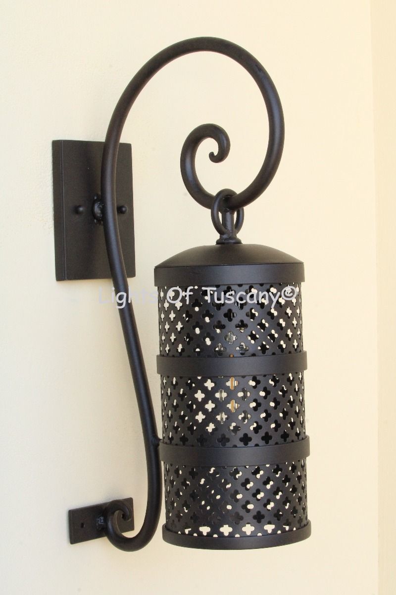 This beautiful hand crafted outdoor wall light is made of all authentic hand forged wrought iron. All our fixtures are hand painted and available in any of our finish options. This fixture is perfect for garage lighting, outdoor walls, backyard and patio lighting.