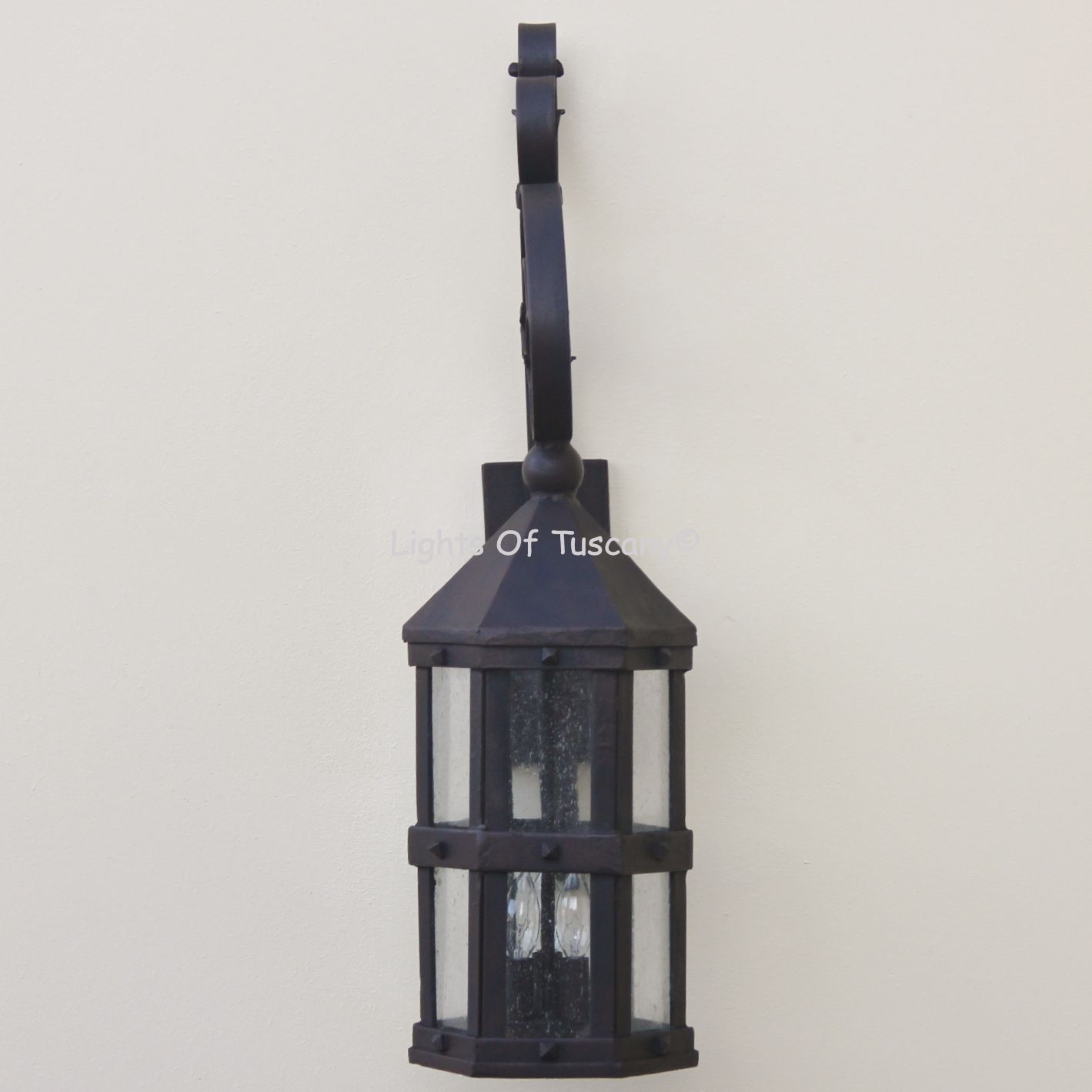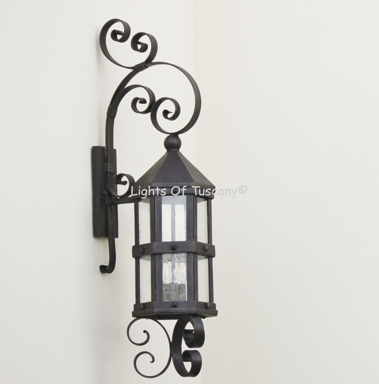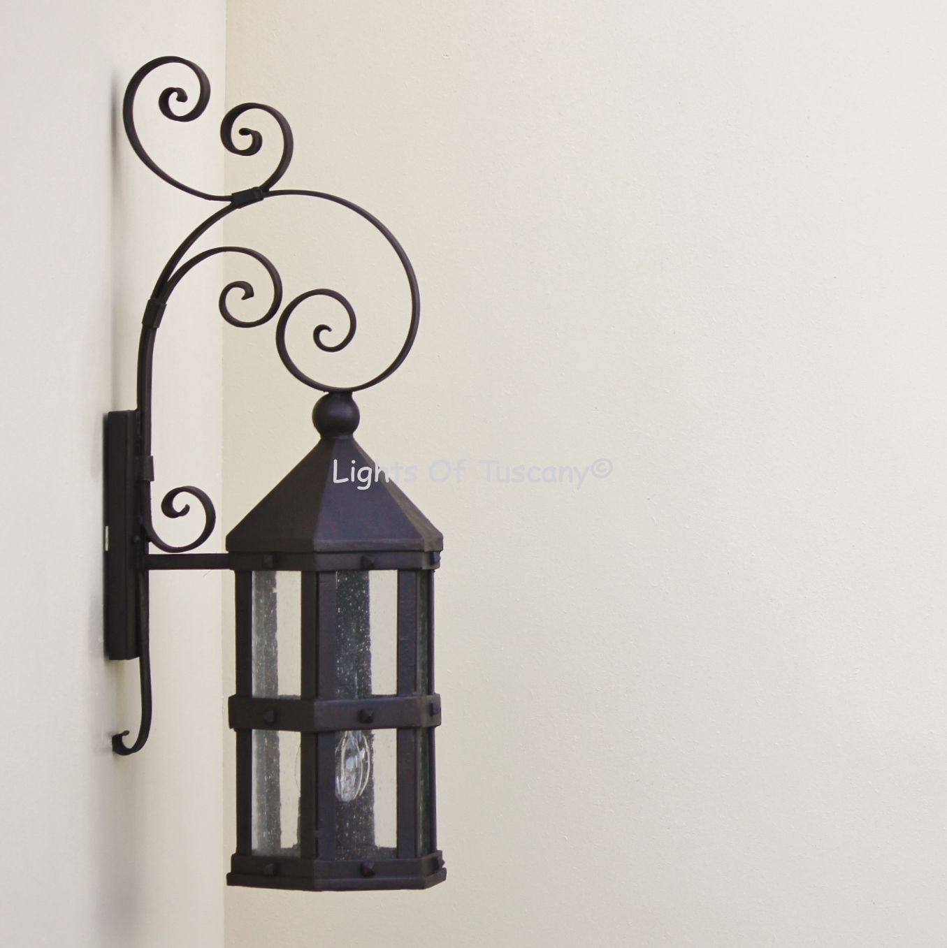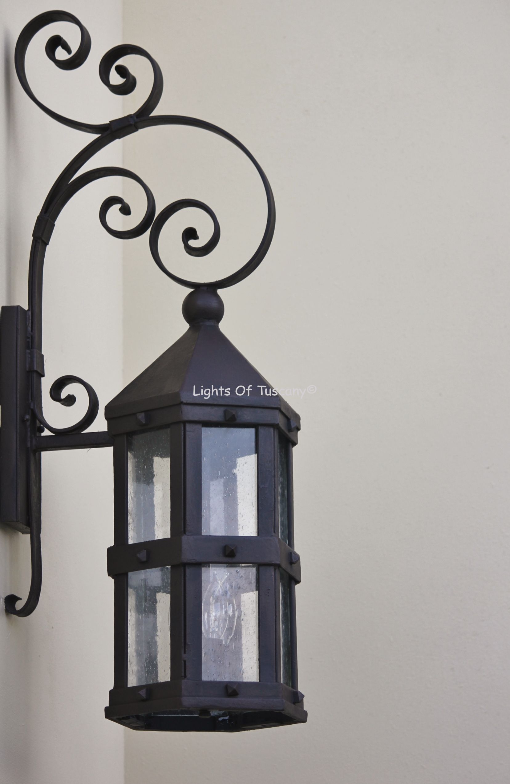 This beautiful hand crafted outdoor wall light is made of all authentic hand forged wrought iron. All our fixtures are hand painted and available in any of our finish options. This fixture is perfect for garage lighting, outdoor walls, backyard and patio lighting.