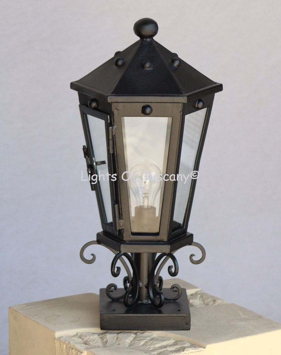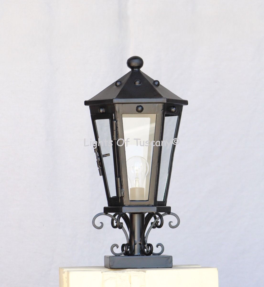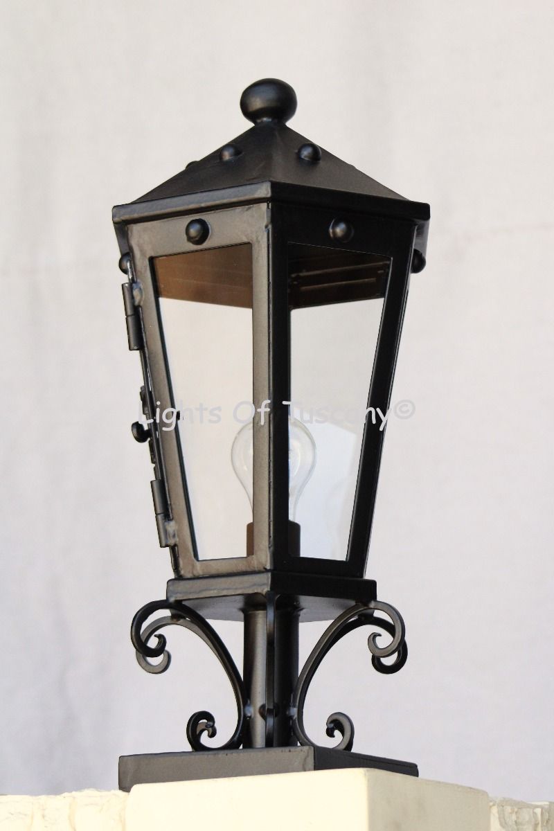 This beautiful hand crafted outdoor post light is made of all authentic hand forged wrought iron. All our fixtures are hand painted and available in any of our finish options. Available for installation on posts and columns. Please see details below.