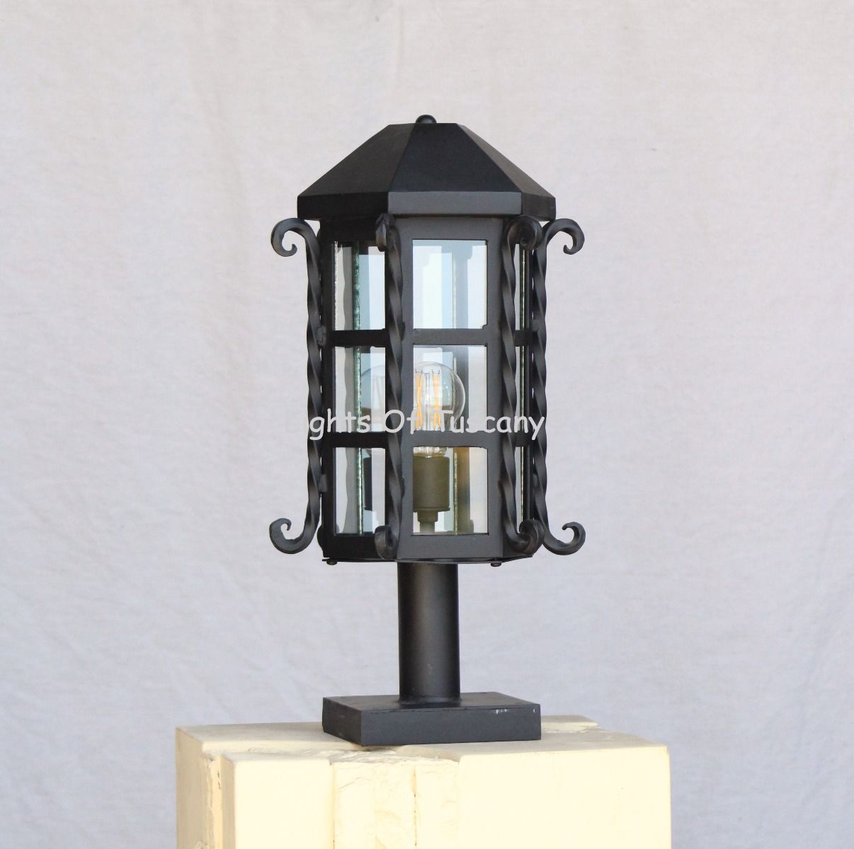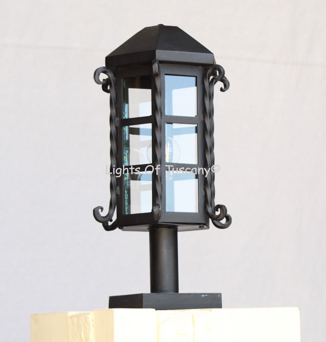 This beautiful hand crafted outdoor post light is made of all authentic hand forged wrought iron. All our fixtures are hand painted and available in any of our finish options. Available for installation on posts and columns. Please see details below.