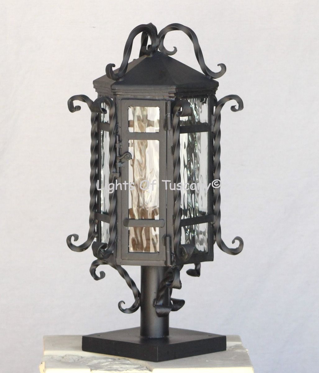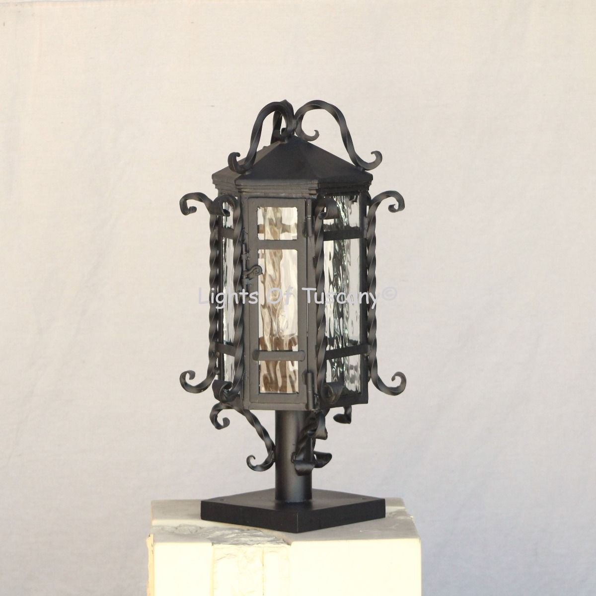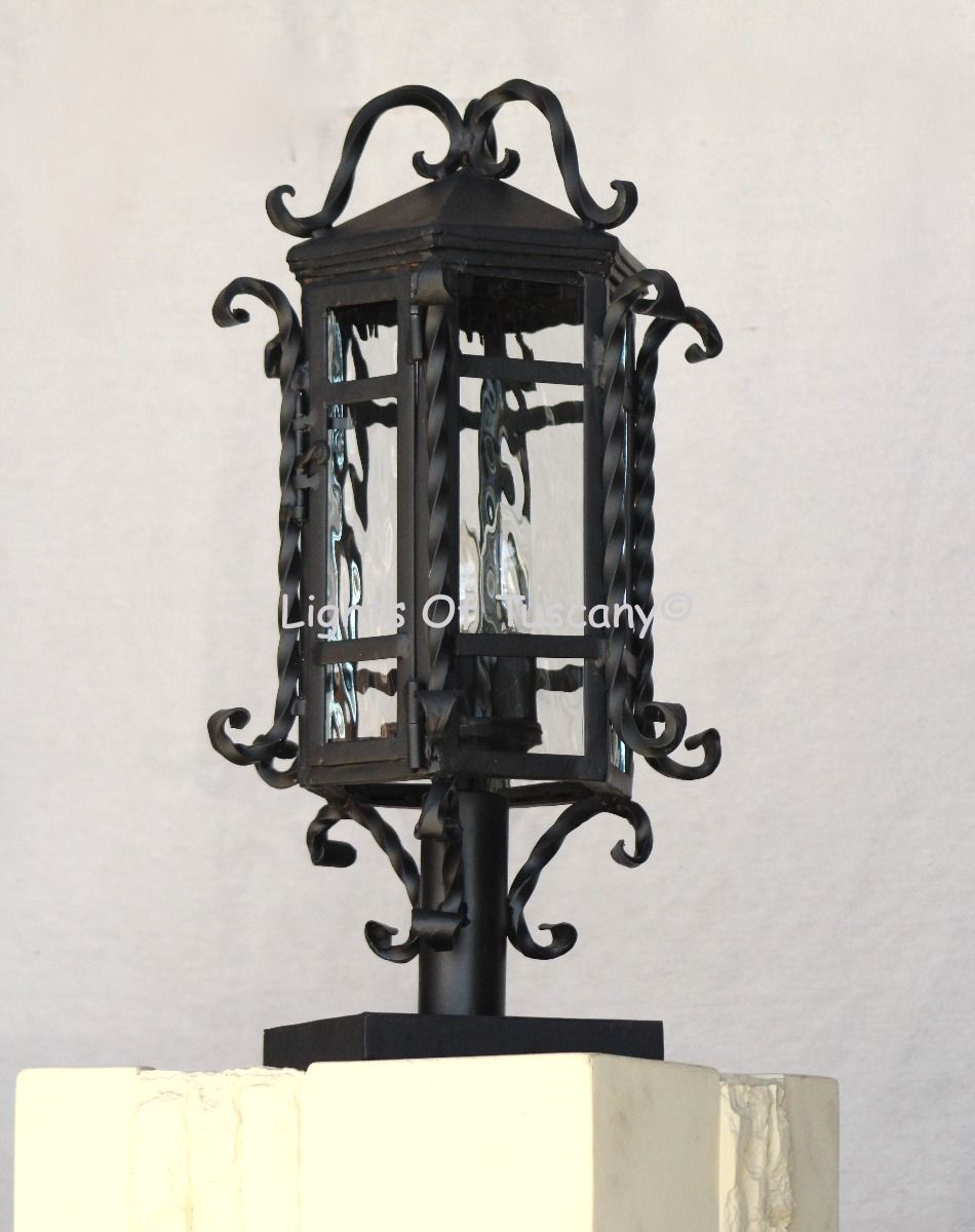This beautiful hand crafted outdoor post light is made of all authentic hand forged wrought iron. All our fixtures are hand painted and available in any of our finish options. Available for installation on posts and columns. Please see details below.