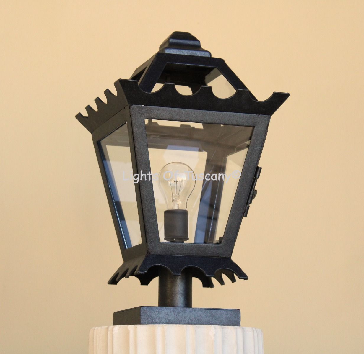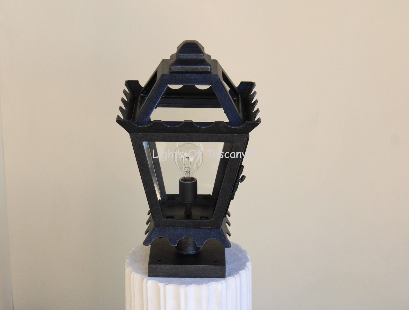 Bring a touch of sophistication to your outdoor space with this stunning post light. Featuring a tapered silhouette, intricate scrollwork, and a decorative finial, this wrought iron lantern is as durable as it is beautiful. Its clear glass panels showcase the bulbs inside, offering brilliant illumination with a classic, timeless charm.