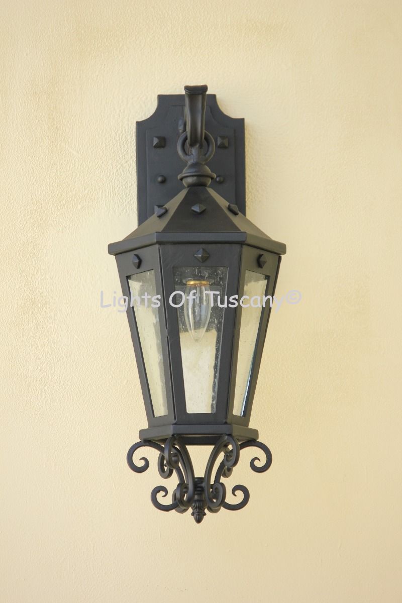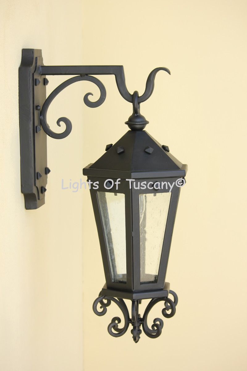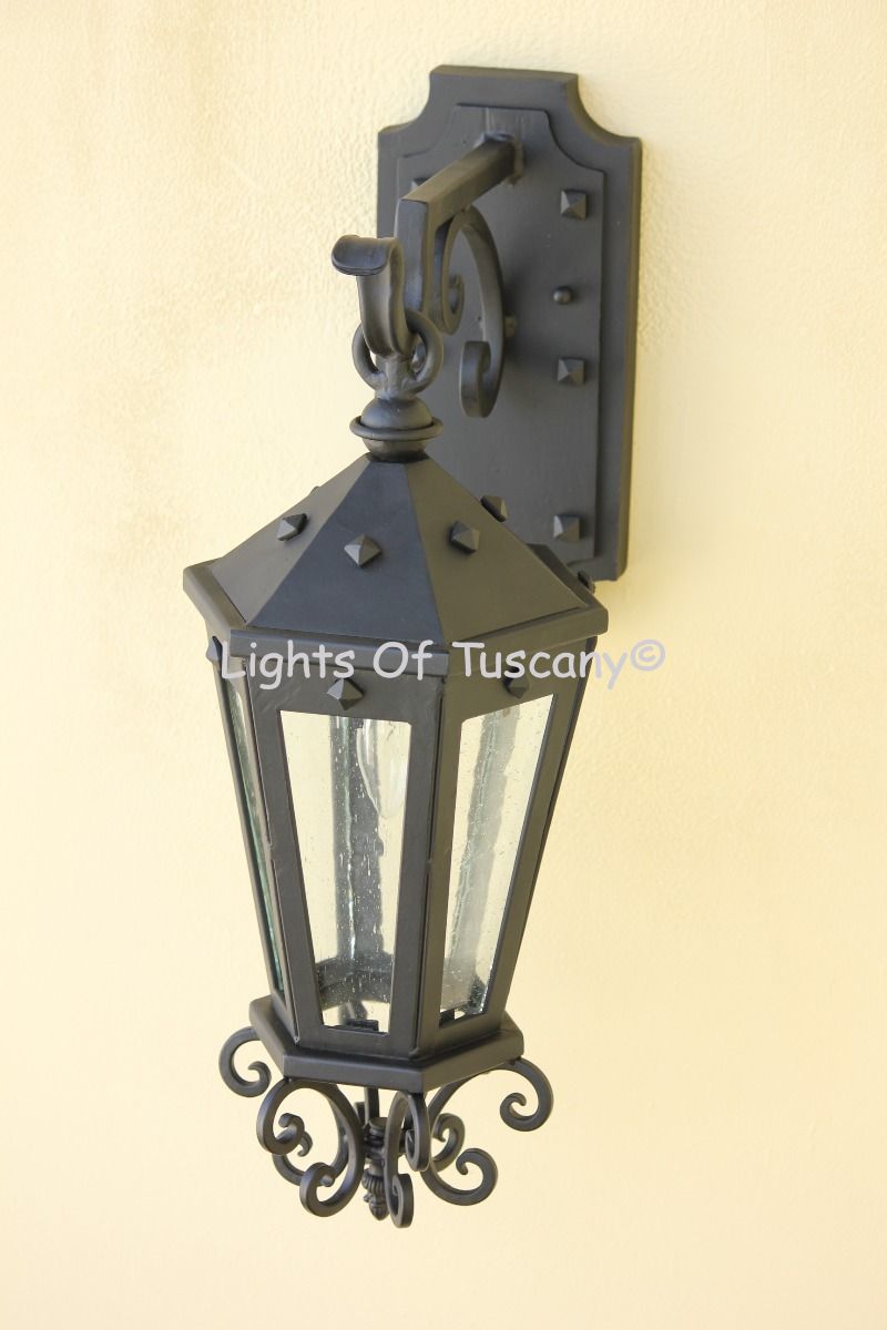 This beautiful hand crafted outdoor wall light is made of all authentic hand forged wrought iron. All our fixtures are hand painted and available in any of our finish options. This fixture is perfect for garage lighting, outdoor walls, backyard and patio lighting.