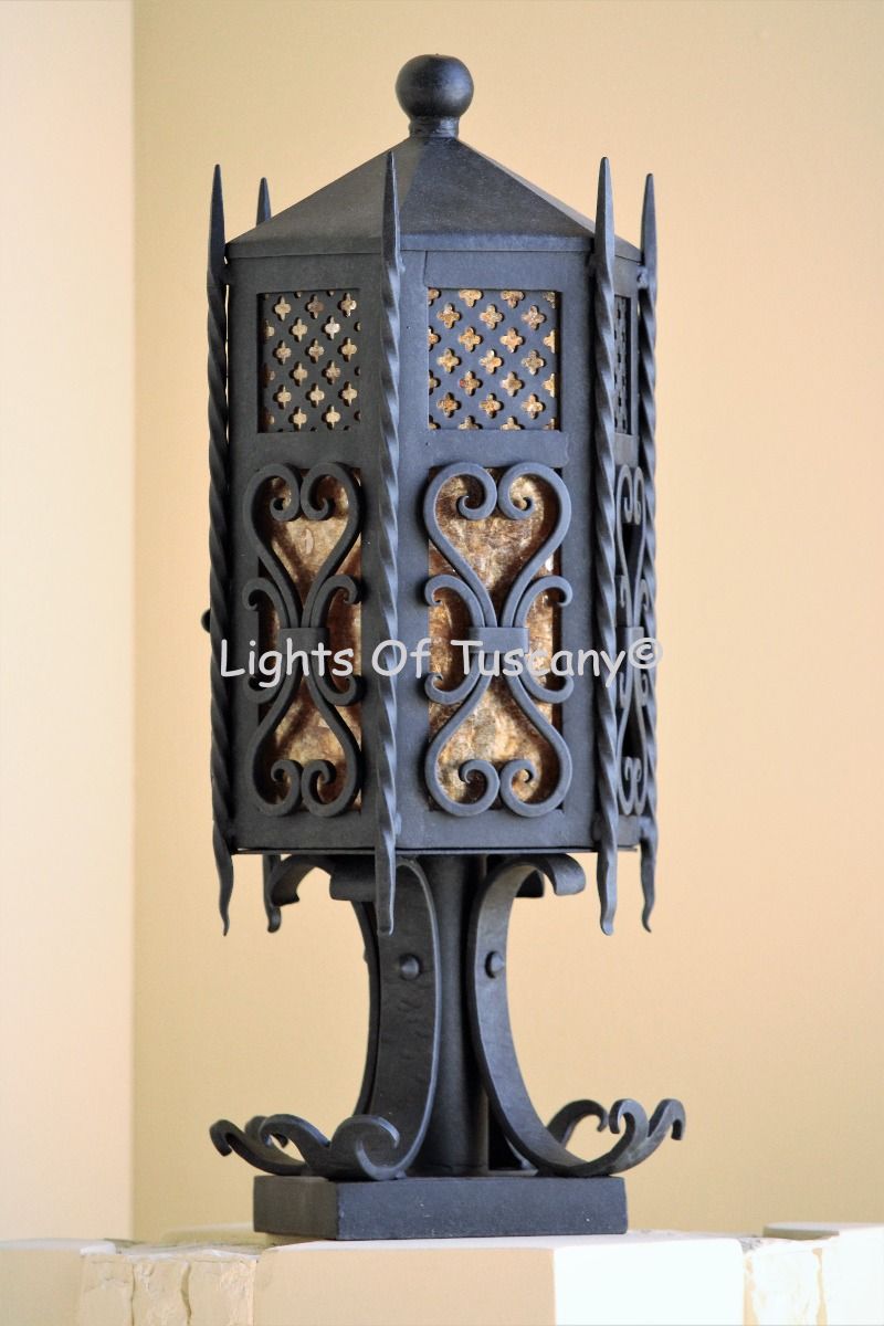 7560-1P Spanish Gothic Revival Wrought Iron Post Light