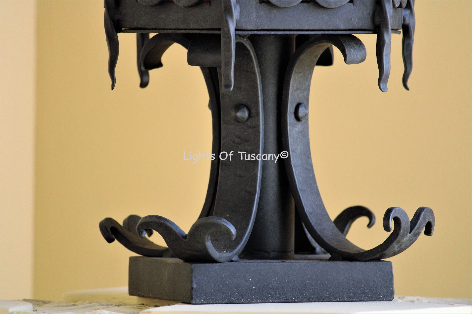 This beautiful hand crafted outdoor post light is made of all authentic hand forged wrought iron. All our fixtures are hand painted and available in any of our finish options. Available for installation on posts and columns. Please see details below.