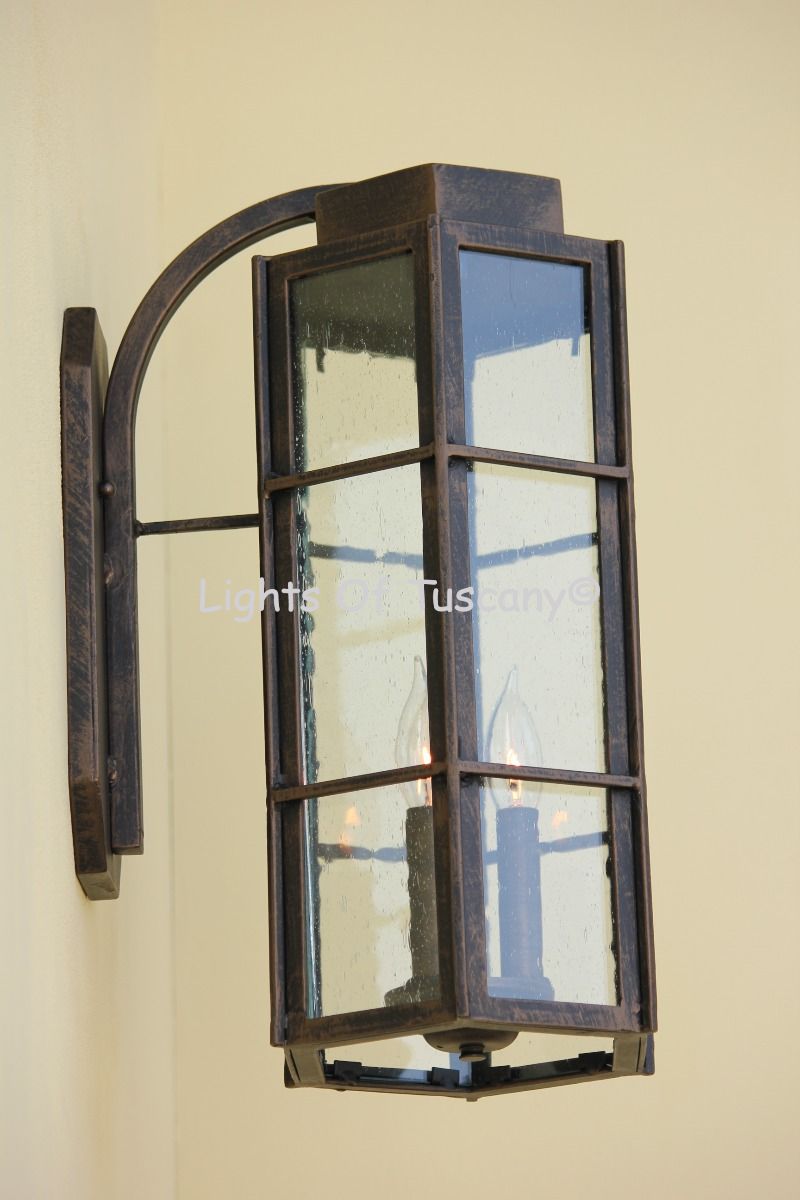 This beautiful hand crafted outdoor wall light is made of all authentic hand forged wrought iron. All our fixtures are hand painted and available in any of our finish options. This fixture is perfect for garage lighting, outdoor walls, backyard and patio lighting.