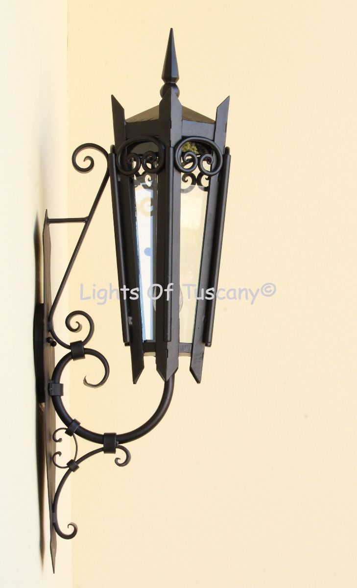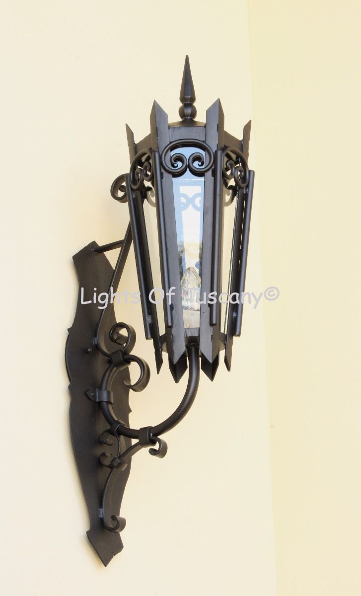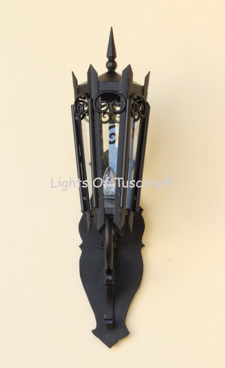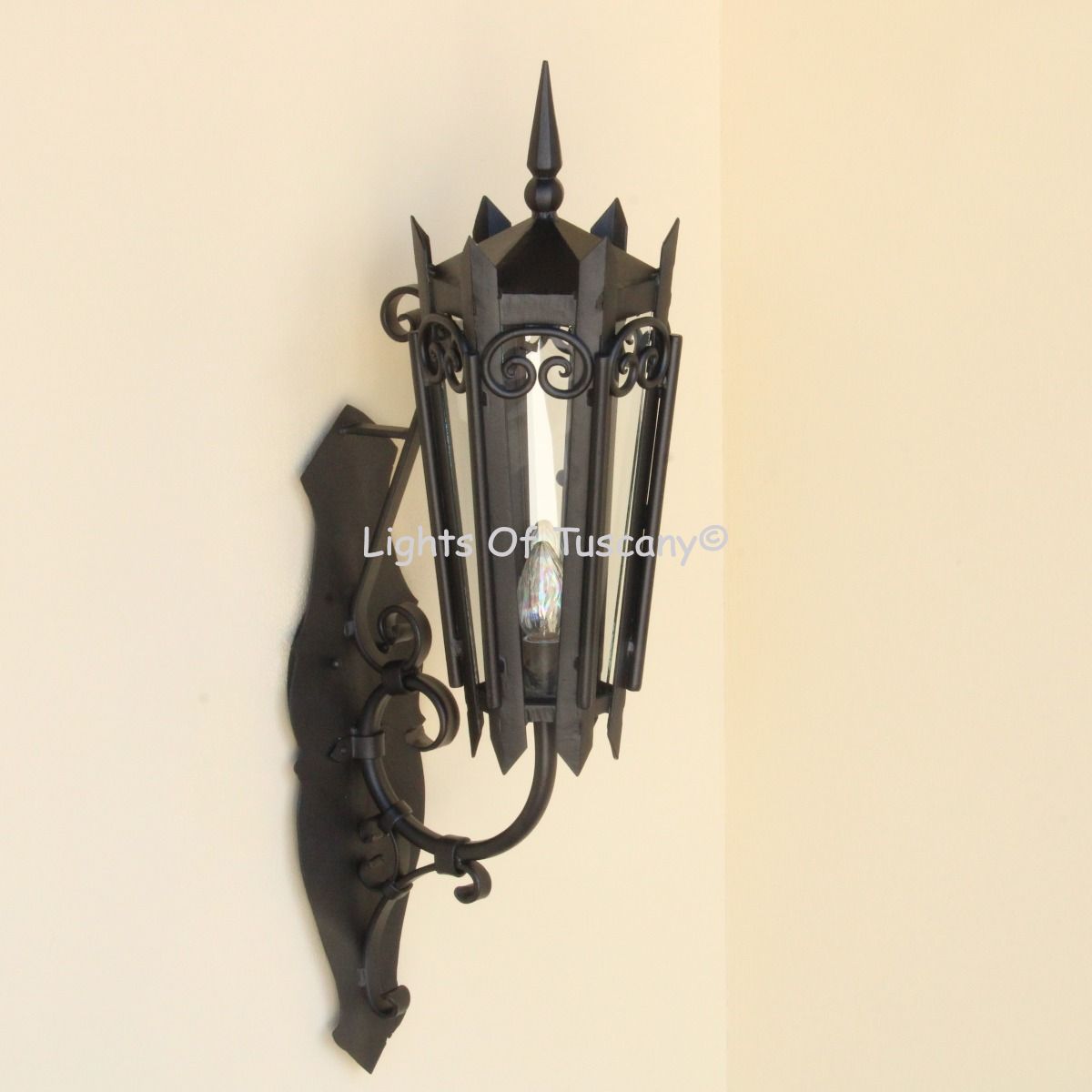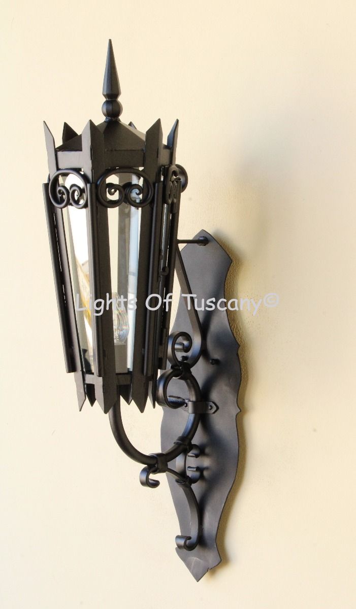 This beautiful hand crafted outdoor wall light is made of all authentic hand forged wrought iron. All our fixtures are hand painted and available in any of our finish options. This fixture is perfect for garage lighting, outdoor walls, backyard and patio lighting.