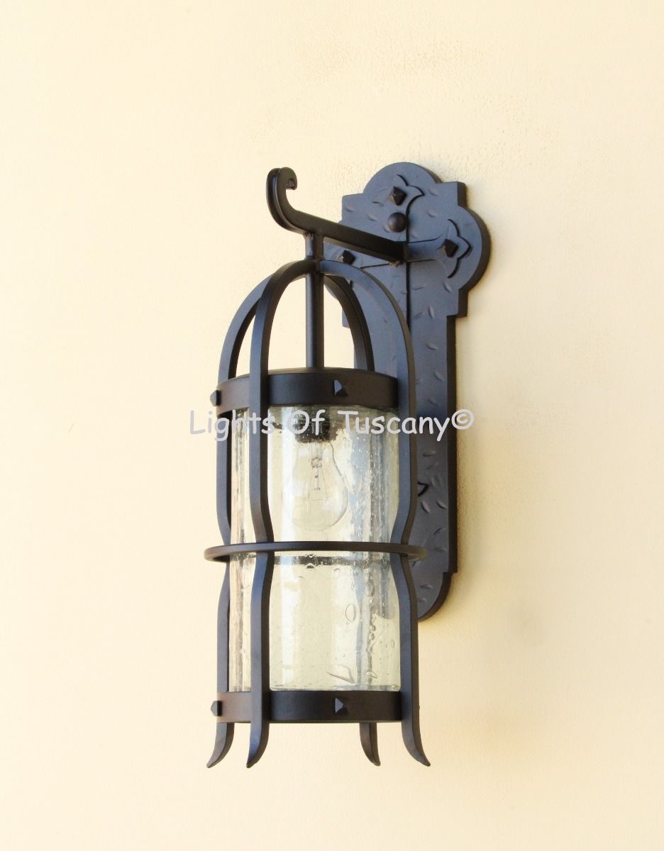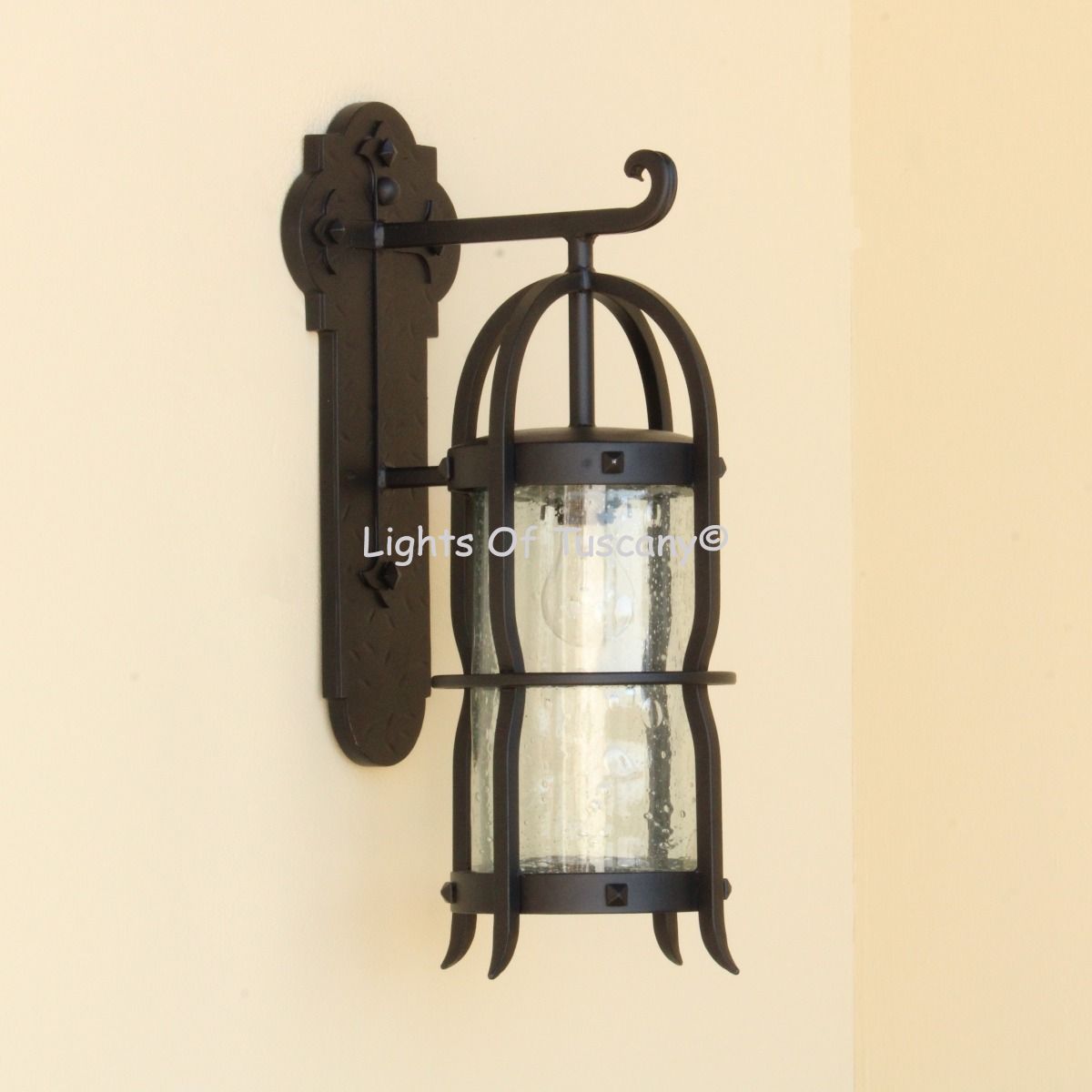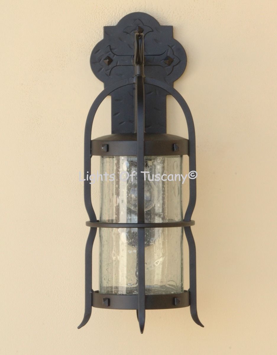This beautiful hand crafted outdoor wall light is made of all authentic hand forged wrought iron. All our fixtures are hand painted and available in any of our finish options. This fixture is perfect for garage lighting, outdoor walls, backyard and patio lighting.