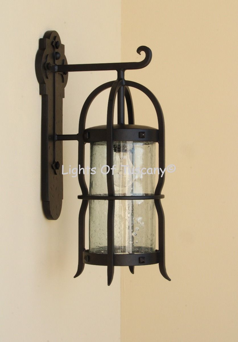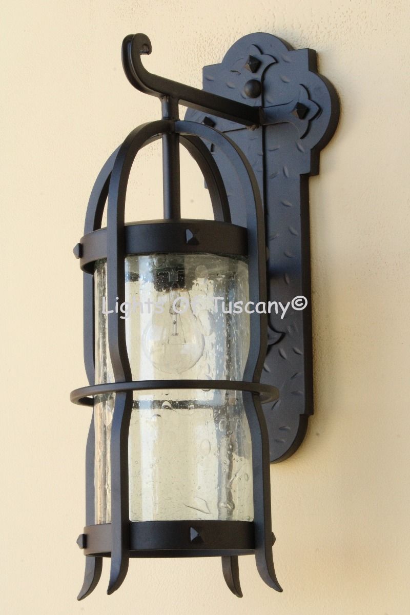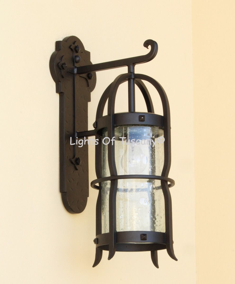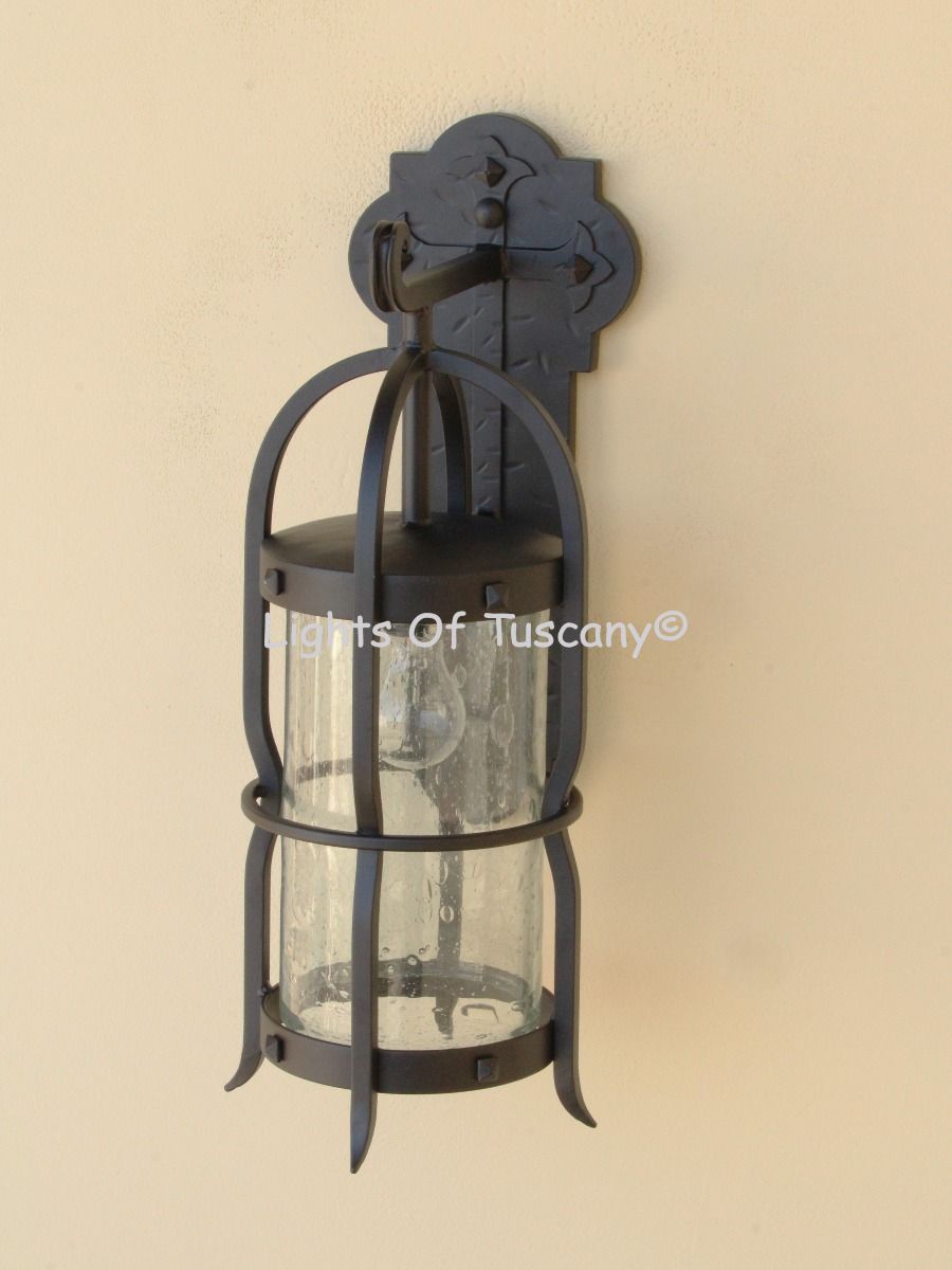 This beautiful hand crafted outdoor wall light is made of all authentic hand forged wrought iron. All our fixtures are hand painted and available in any of our finish options. This fixture is perfect for garage lighting, outdoor walls, backyard and patio lighting.