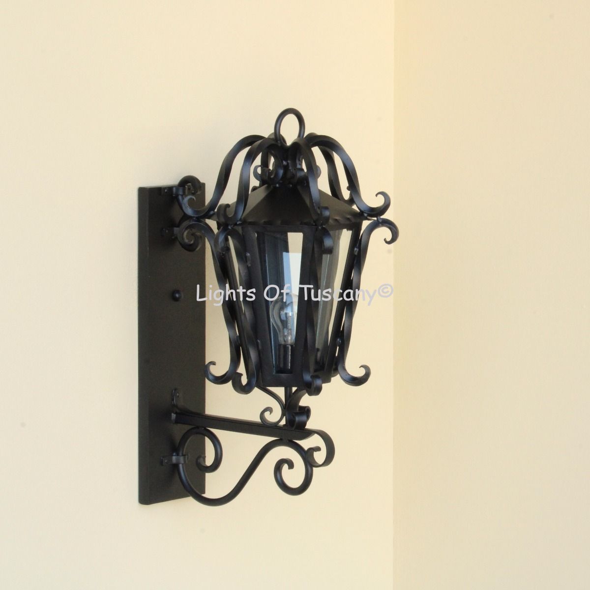 This beautiful hand crafted outdoor wall light is made of all authentic hand forged wrought iron. All our fixtures are hand painted and available in any of our finish options. This fixture is perfect for garage lighting, outdoor walls, backyard and patio lighting.