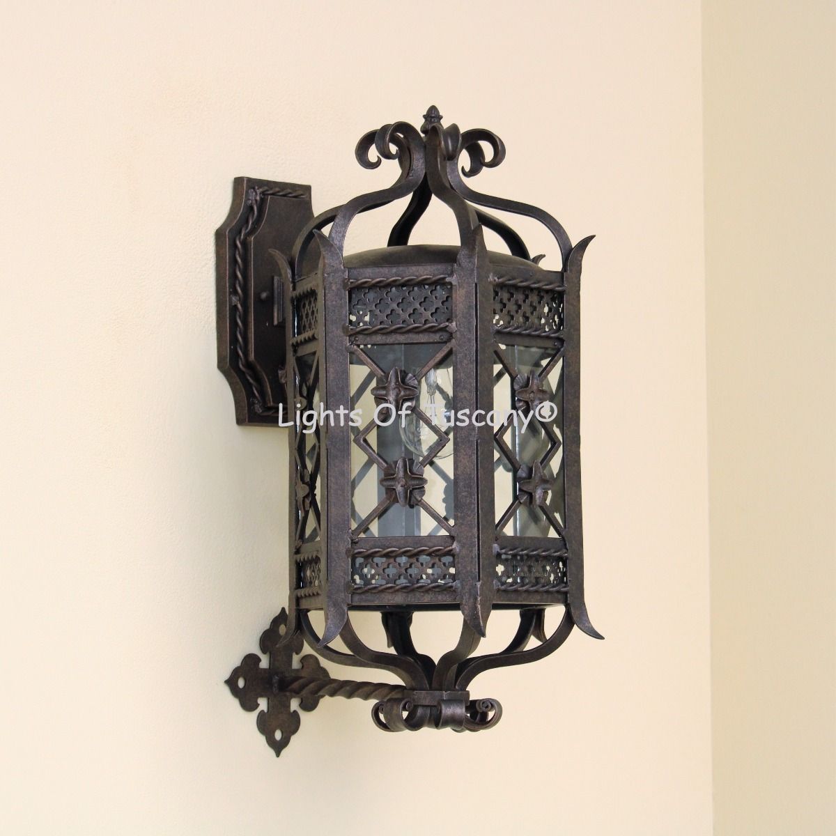 This beautiful hand crafted outdoor wall light is made of all authentic hand forged wrought iron. All our fixtures are hand painted and available in any of our finish options. This fixture is perfect for garage lighting, outdoor walls, backyard and patio lighting.