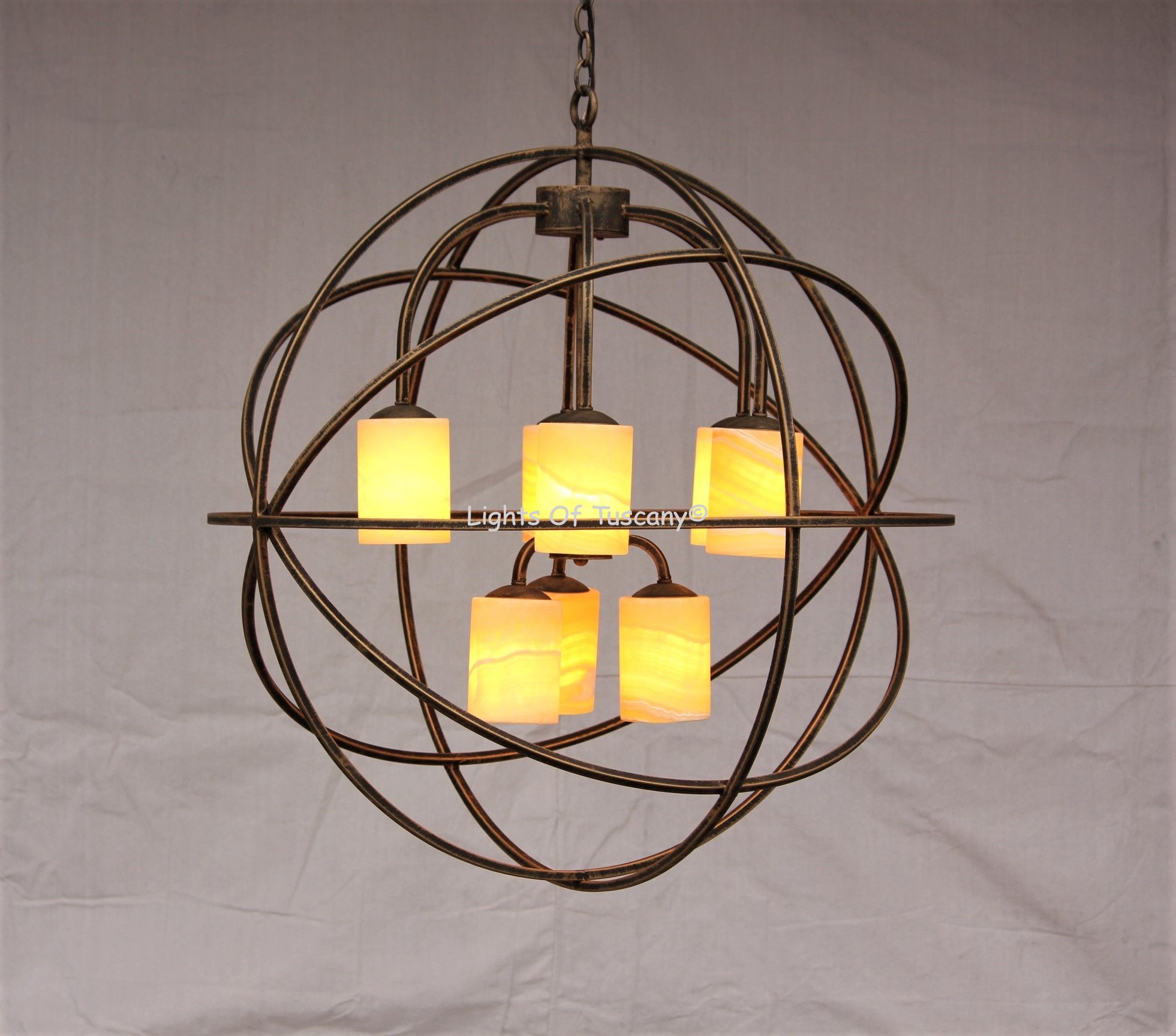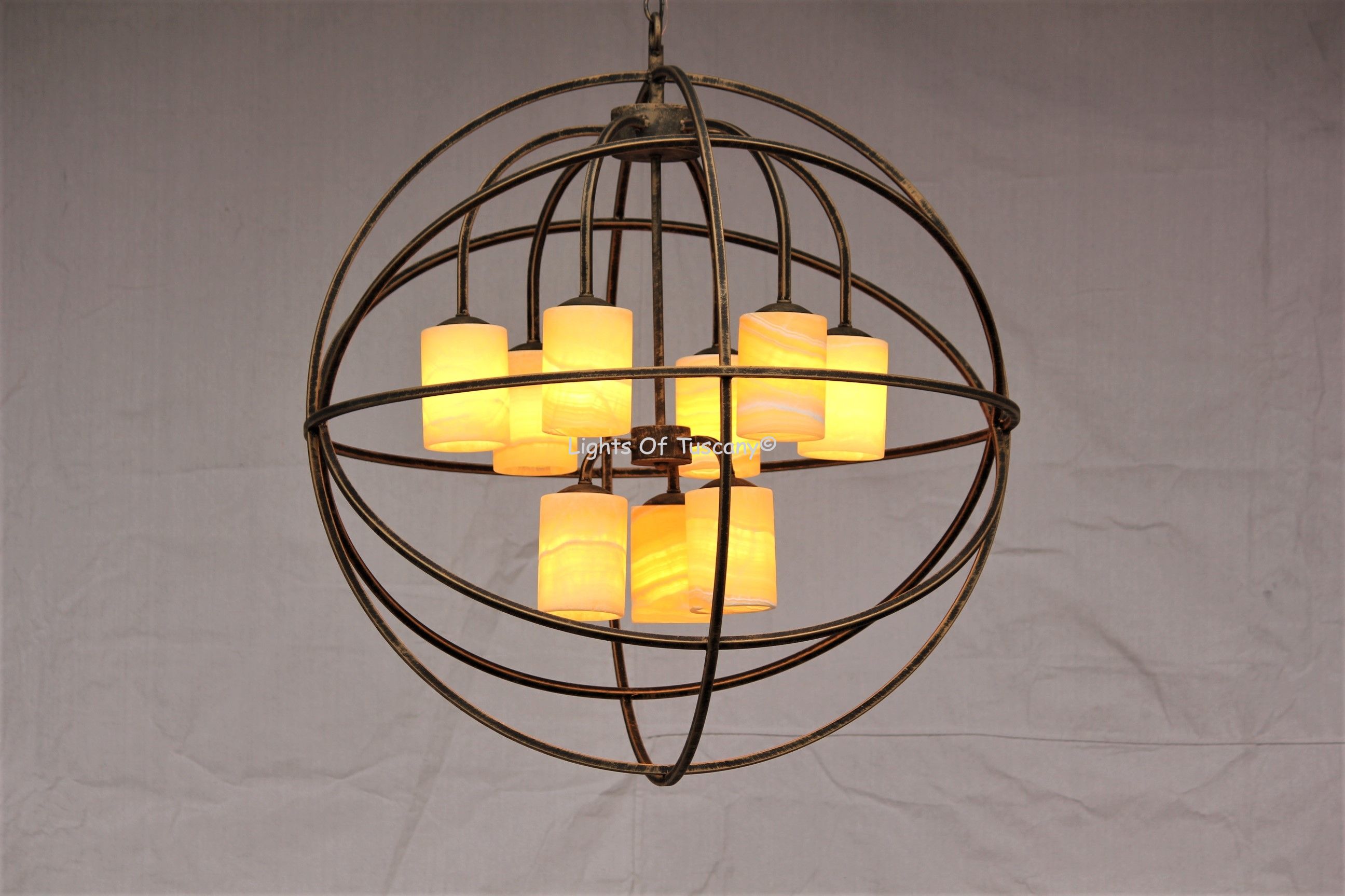 Wrought Iron Contemporary Orb Chandelier with real onyx stone