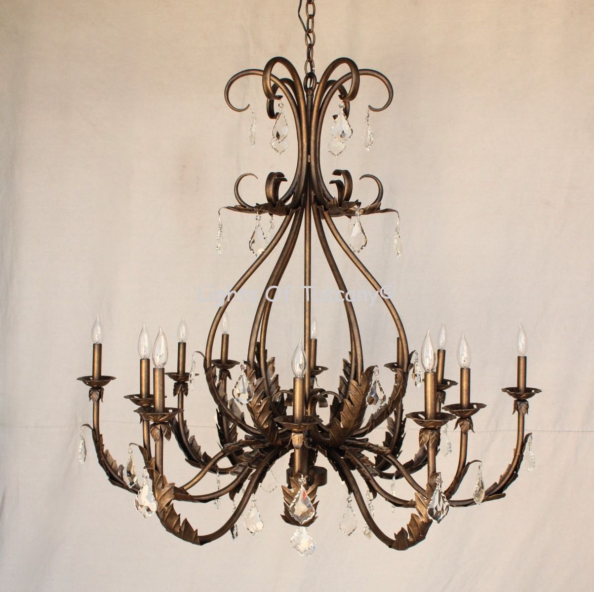 3105-12 Tuscan Mediterranean Style Iron Chandelier with Crystals