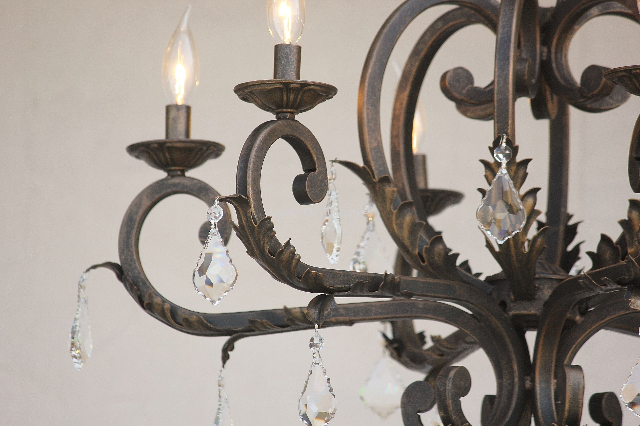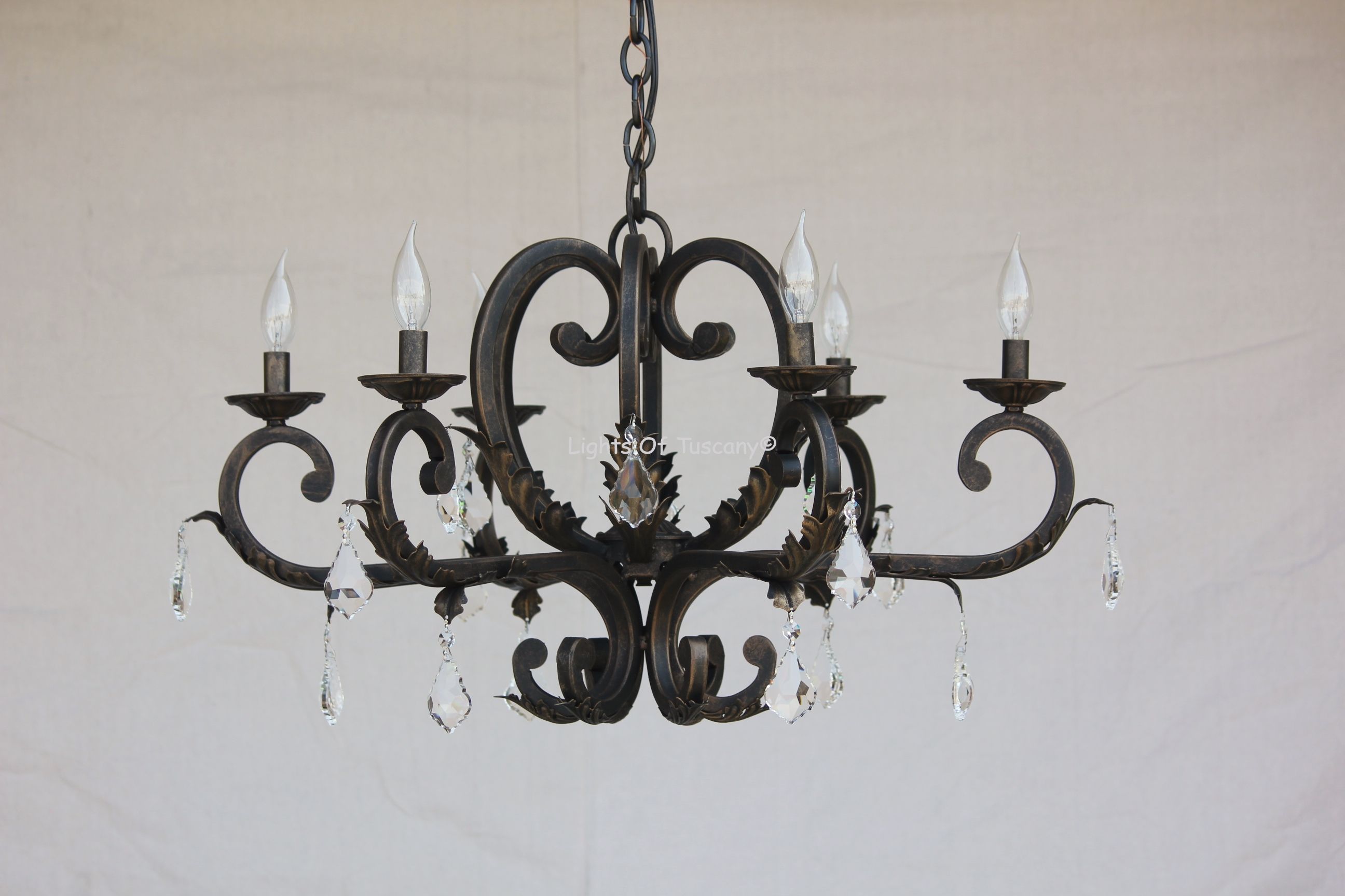 Tuscan ChandelierThis beautiful Rustic Spanish Revival Style Chandelier is made of all hand forged wrought iron. This fixture is perfect for your entryway, living spaces, or dining area. Available in your choice of color options.