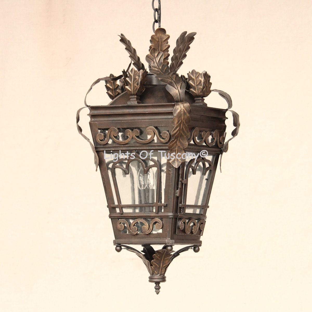 This beautiful hanging light is authentic hand forged wrought iron. Decorated with beautiful hand made iron accents. This fixture is perfect for entryways, dining room, over kitchen islands, outdoor covered areas (dry/damp rated locations), and any living space. Made to order in your choice finish and additional available options at check out.