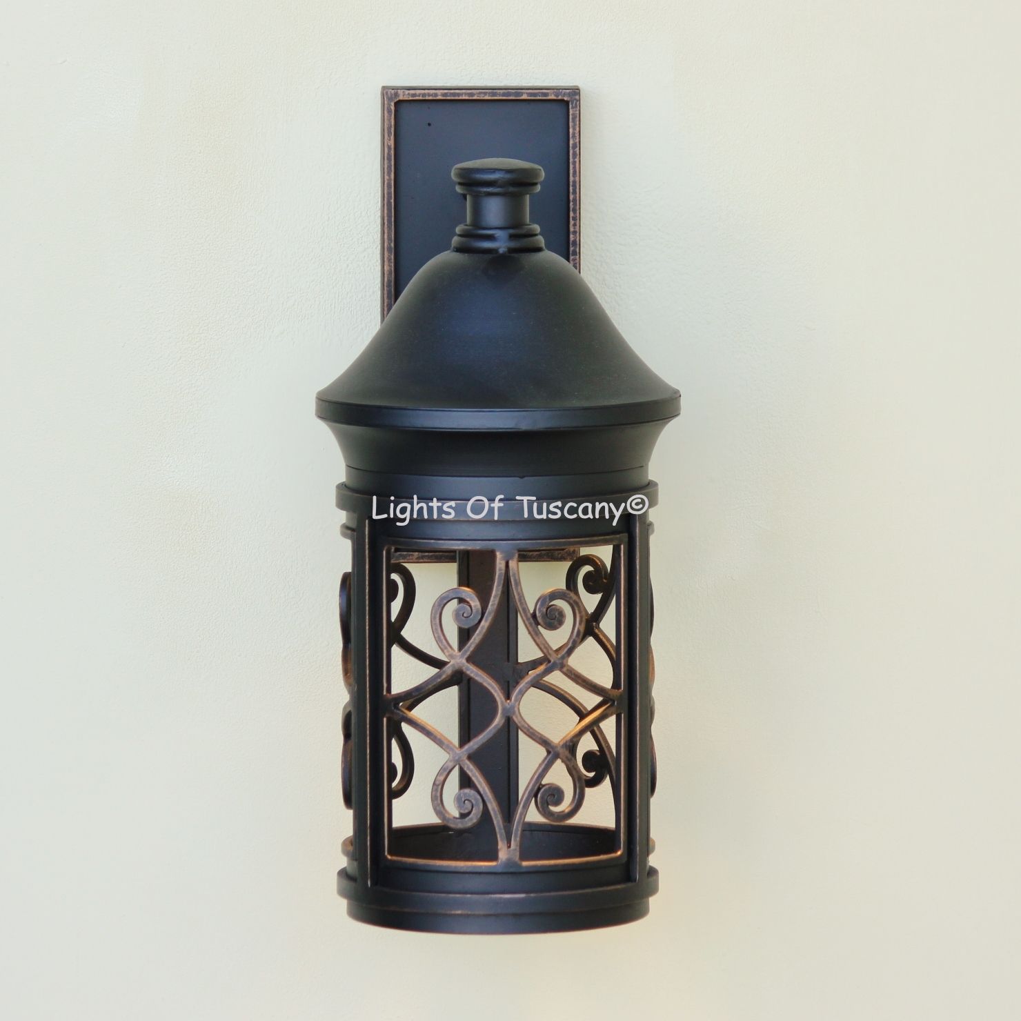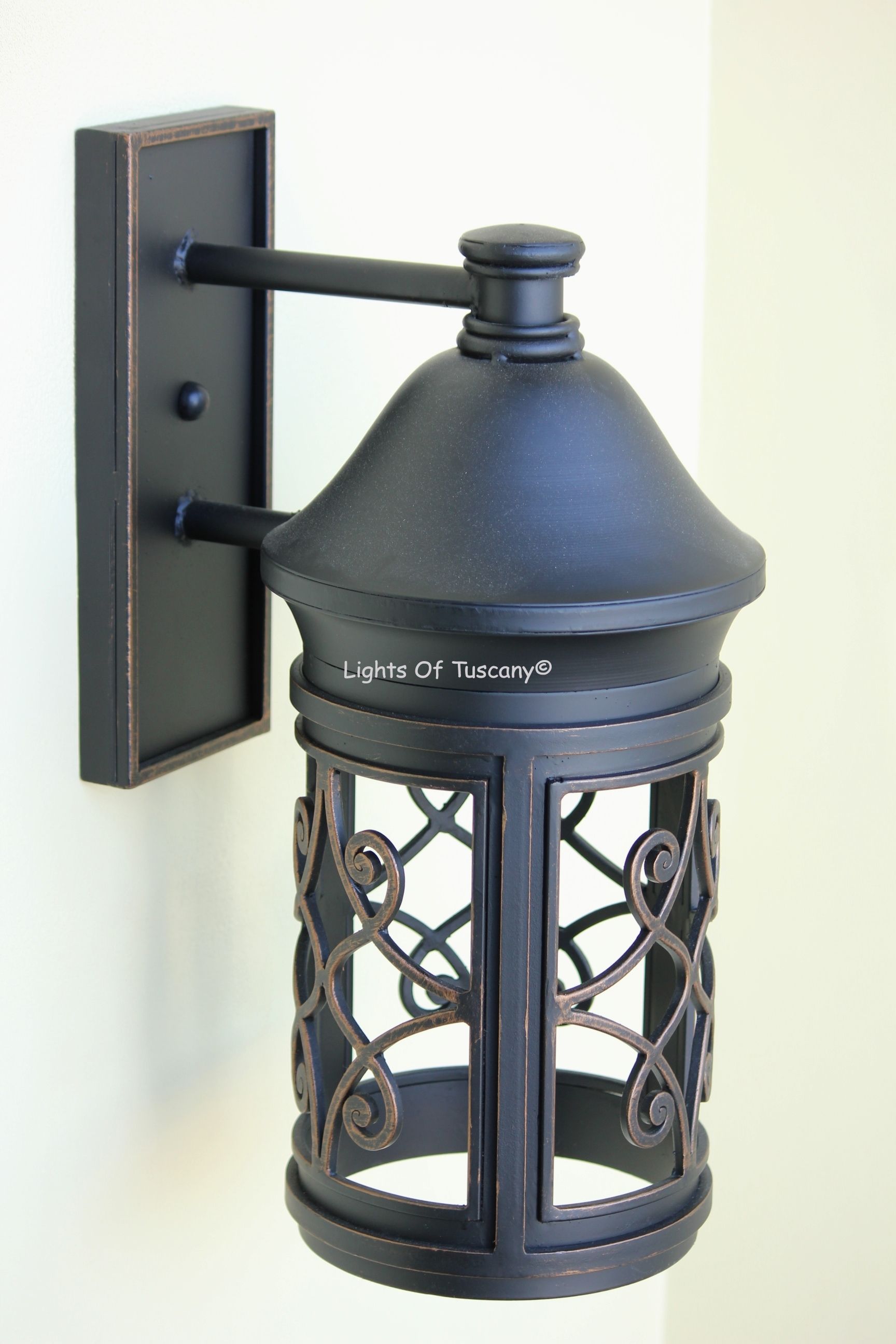 This beautiful hand crafted outdoor wall light is made of all authentic hand forged wrought iron. All our fixtures are hand painted and available in any of our finish options. This fixture is perfect for garage lighting, outdoor walls, backyard and patio lighting.