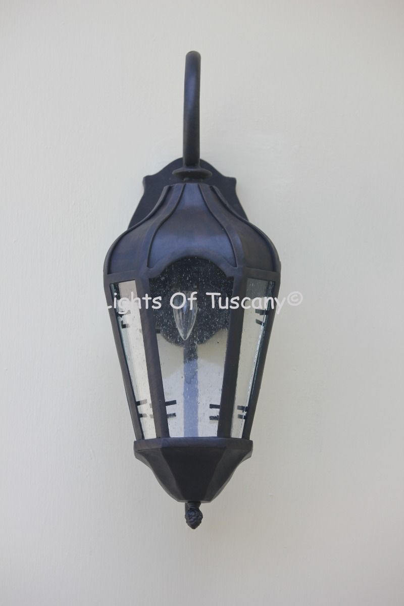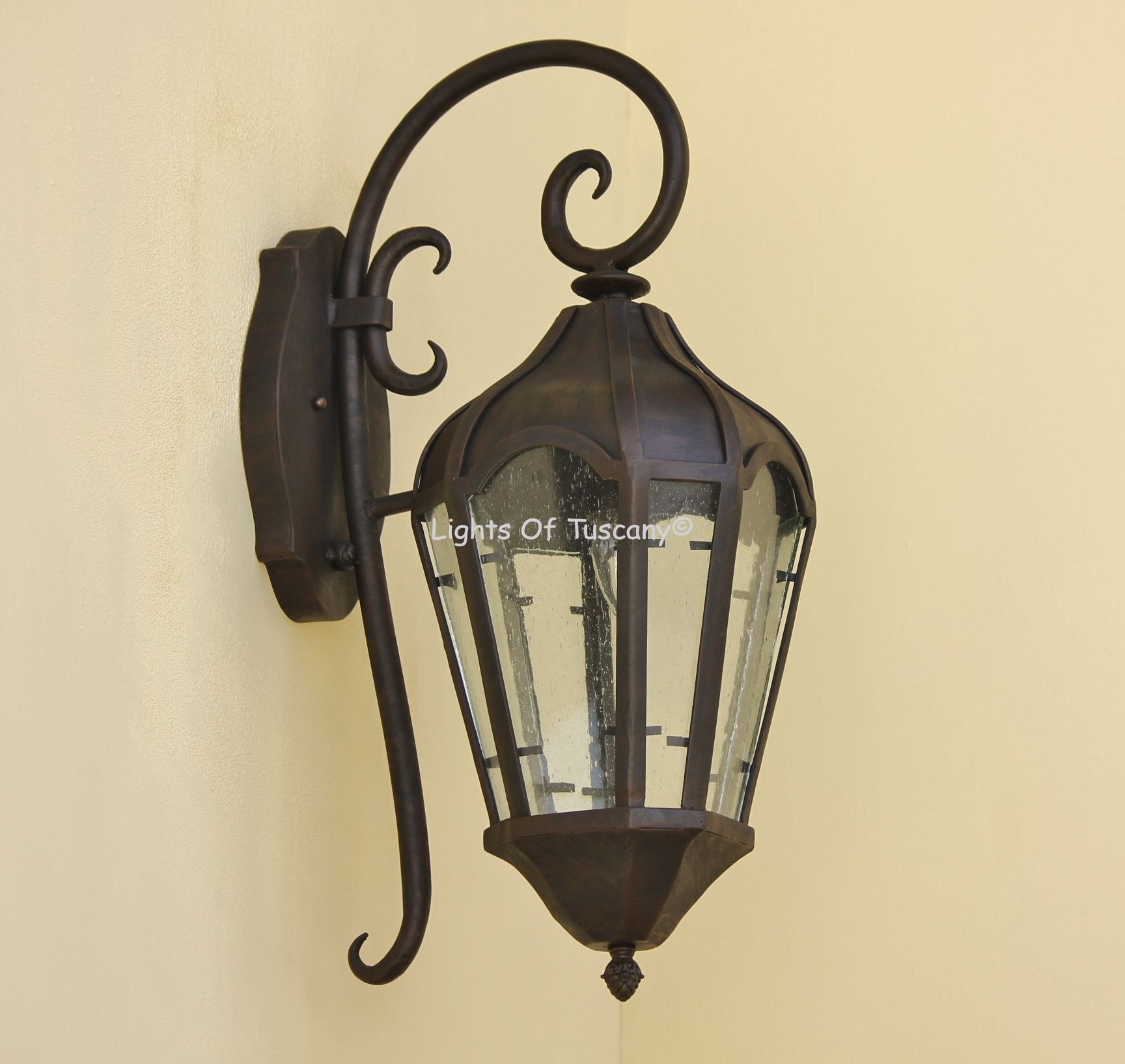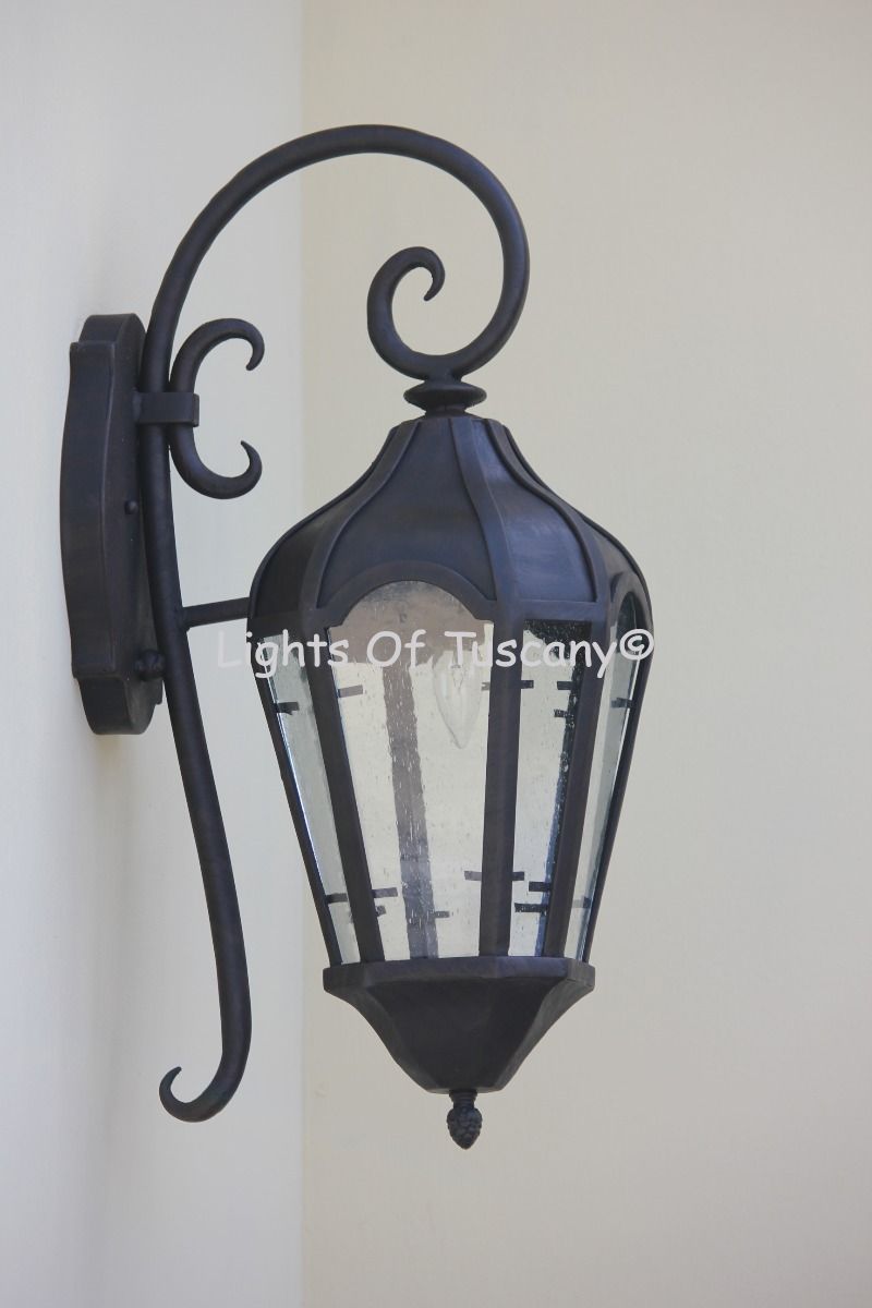 This beautiful hand crafted outdoor wall light is made of all authentic hand forged wrought iron. All our fixtures are hand painted and available in any of our finish options. This fixture is perfect for garage lighting, outdoor walls, backyard and patio lighting.