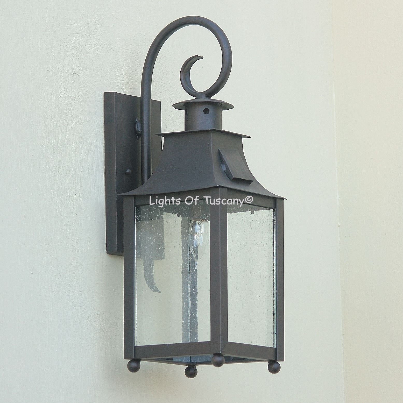 This beautiful hand crafted outdoor wall light is made of all authentic hand forged wrought iron. All our fixtures are hand painted and available in any of our finish options. This fixture is perfect for garage lighting, outdoor walls, backyard and patio lighting.