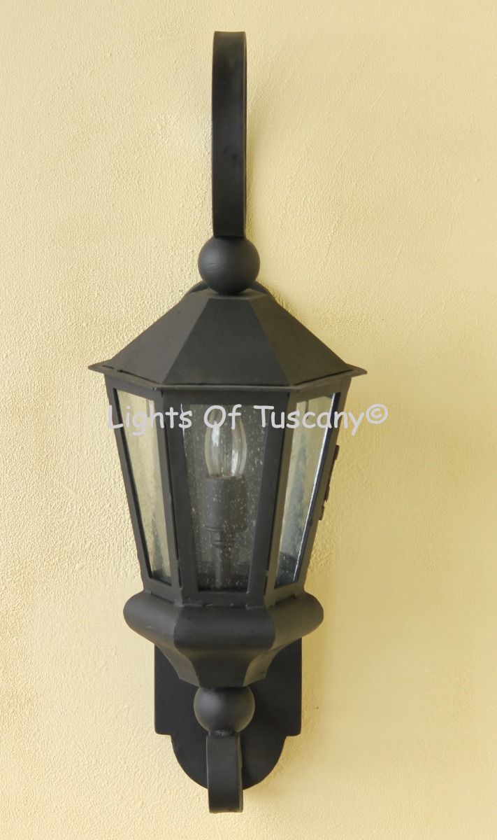 This beautiful hand crafted outdoor wall light is made of all authentic hand forged wrought iron. All our fixtures are hand painted and available in any of our finish options. This fixture is perfect for garage lighting, outdoor walls, backyard and patio lighting.