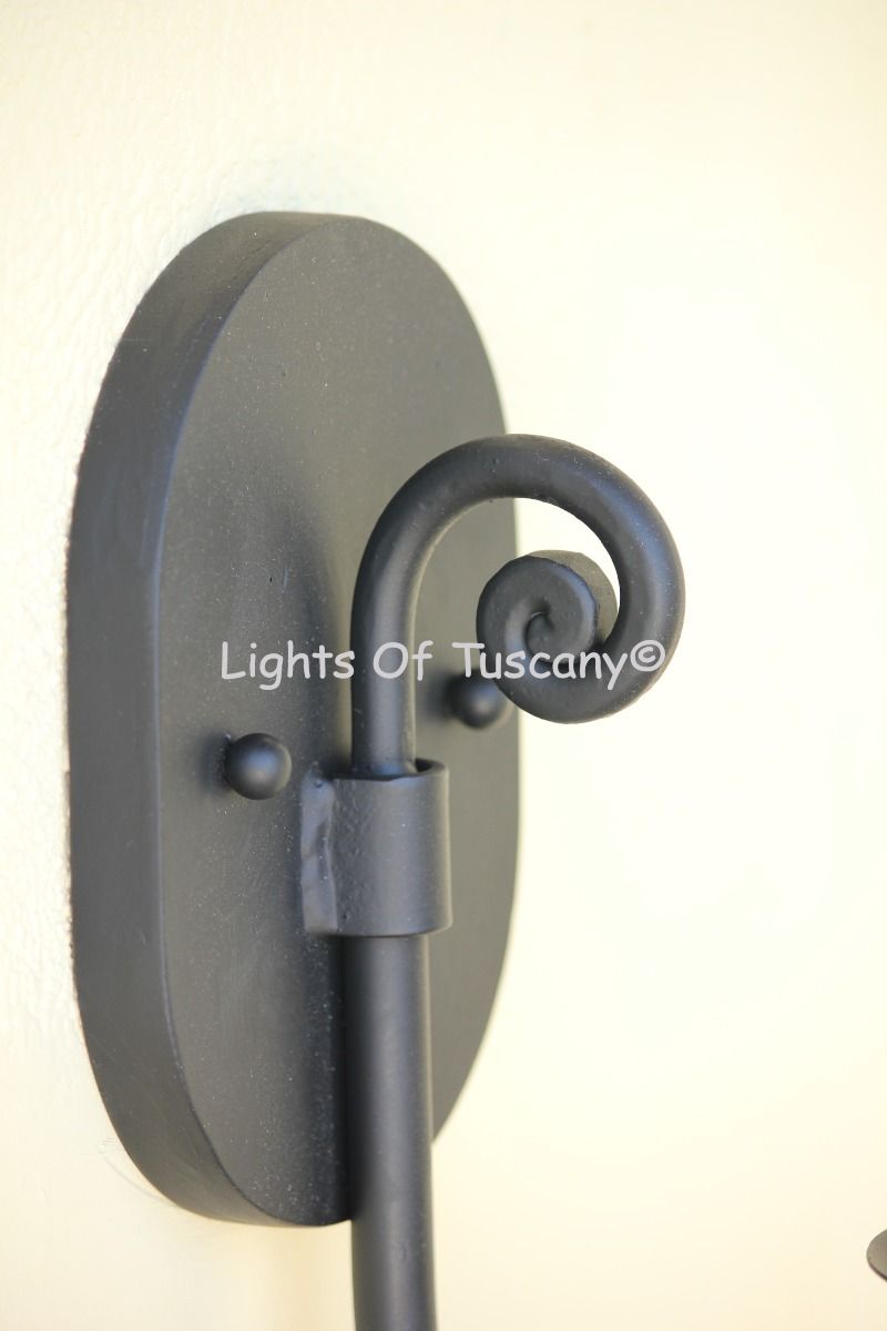 This beautiful hand crafted outdoor wall light is made of all authentic hand forged wrought iron.    All our fixtures are hand painted and available in any of our finish options.  This fixture is perfect for garage lighting, outdoor walls, backyard and patio lighting.