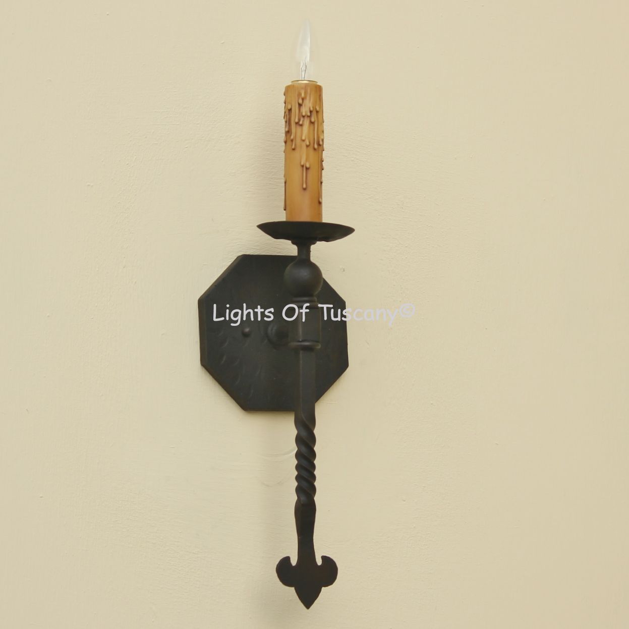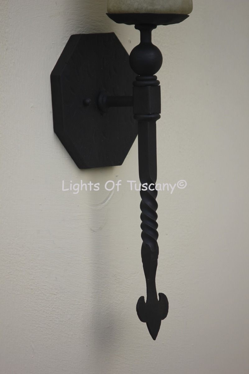 This beautiful hand crafted outdoor wall light is made of all authentic hand forged wrought iron. All our fixtures are hand painted and available in any of our finish options. This fixture is perfect for garage lighting, outdoor walls, backyard and patio lighting.