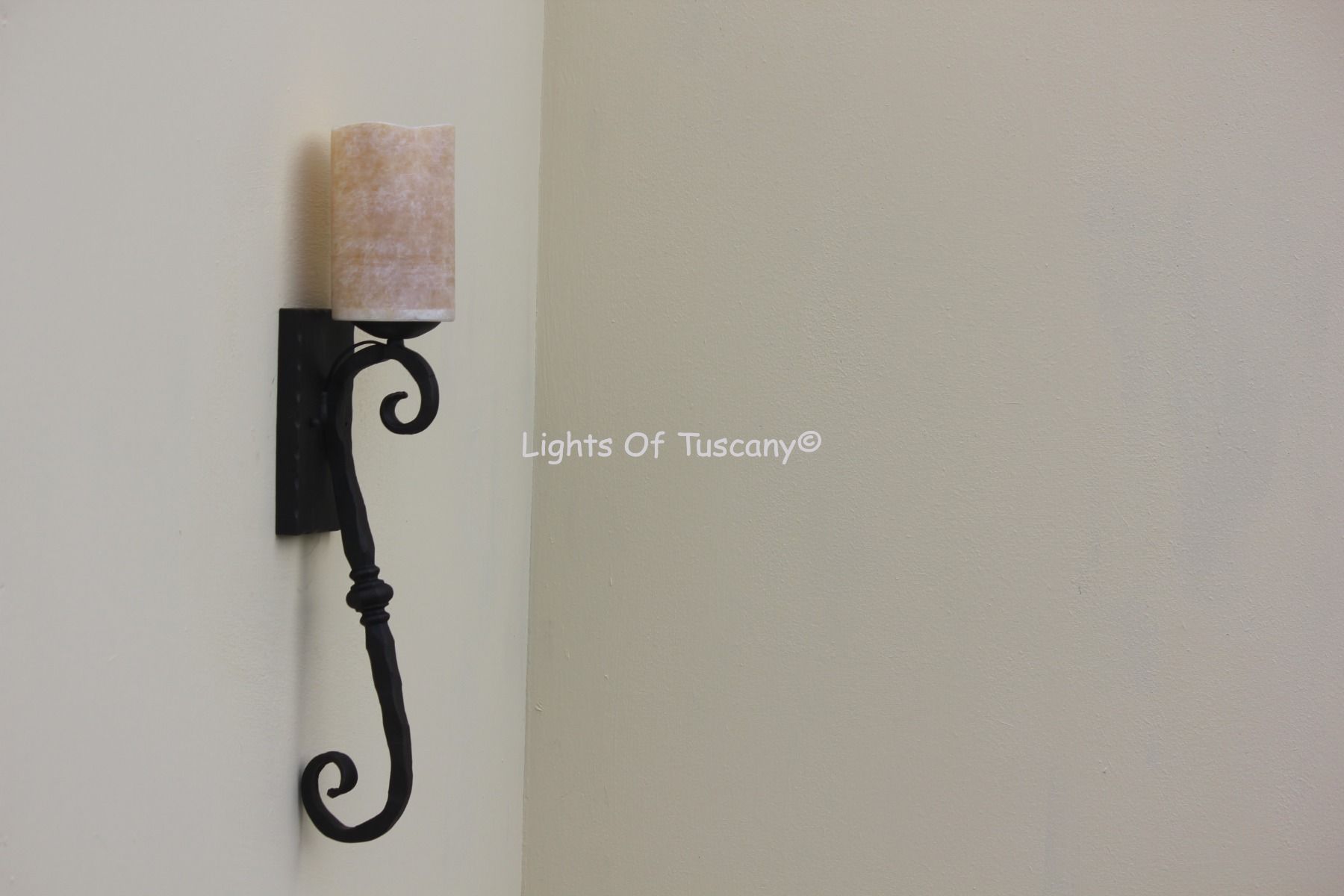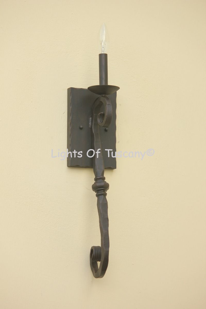 Beautiful authentic hand forged wrought iron lighting fixture. This wall sconce is perfect as a hallway light, bedside lighting, bathroom vanity or any living space. Available in your selection of finish options.