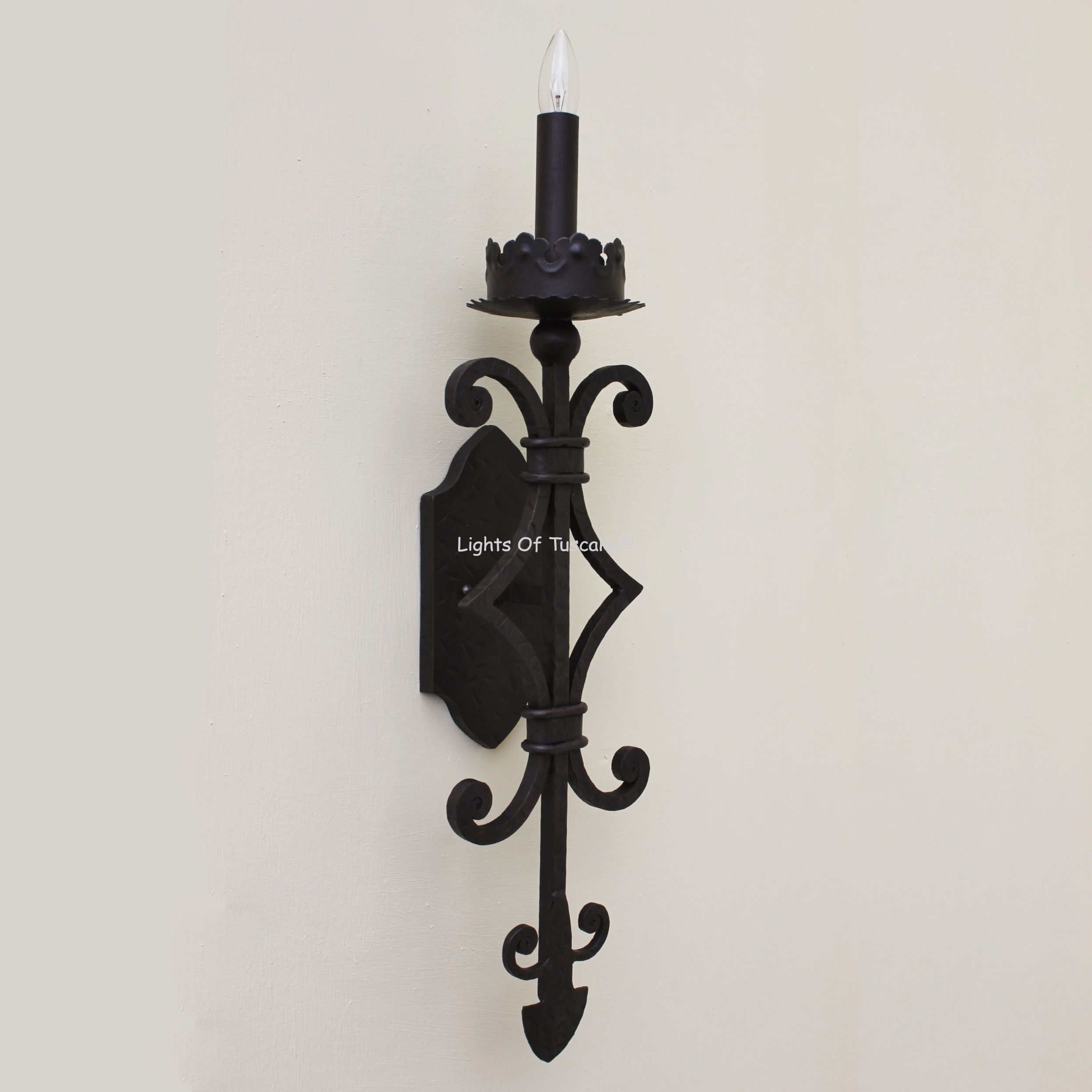 This beautiful hand crafted outdoor wall light is made of all authentic hand forged wrought iron. All our fixtures are hand painted and available in any of our finish options. This fixture is perfect for garage lighting, outdoor walls, backyard and patio lighting.