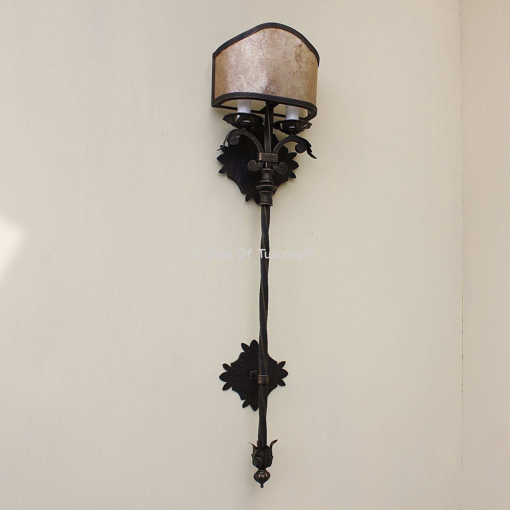 This beautiful hand crafted outdoor wall light is made of all authentic hand forged wrought iron. All our fixtures are hand painted and available in any of our finish options. This fixture is perfect for garage lighting, outdoor walls, backyard and patio lighting.
