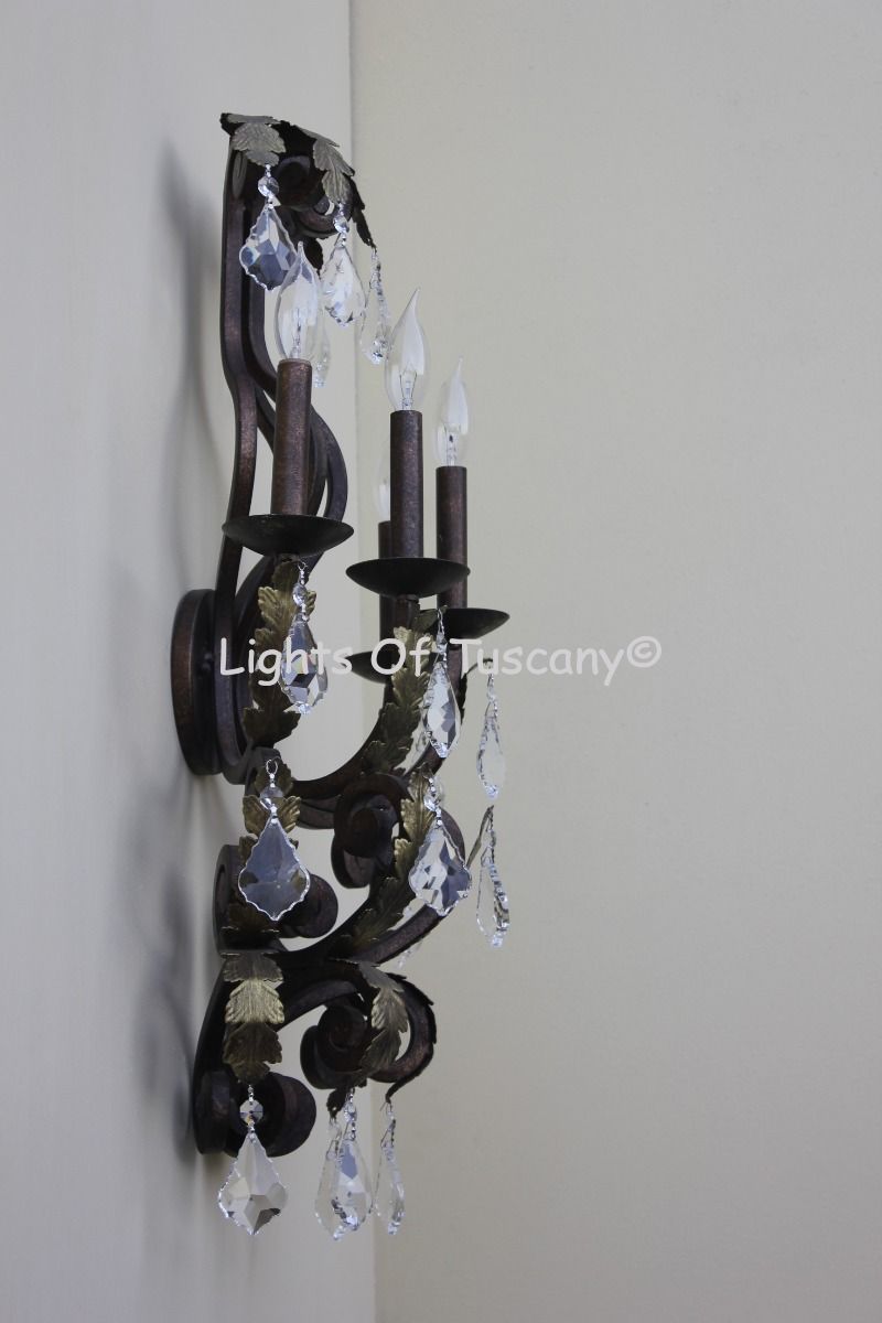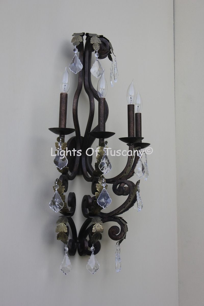 5211-4 Tuscan-Wrought Iron- Crystal Wall Lamp