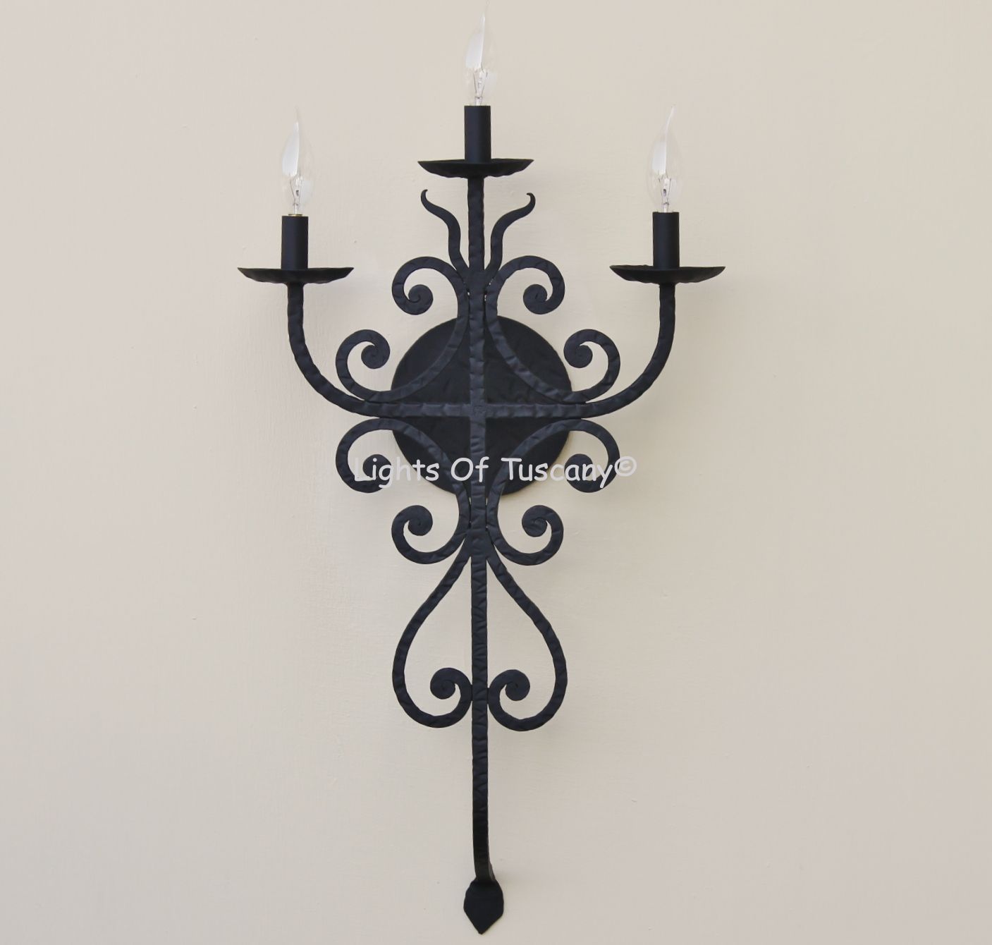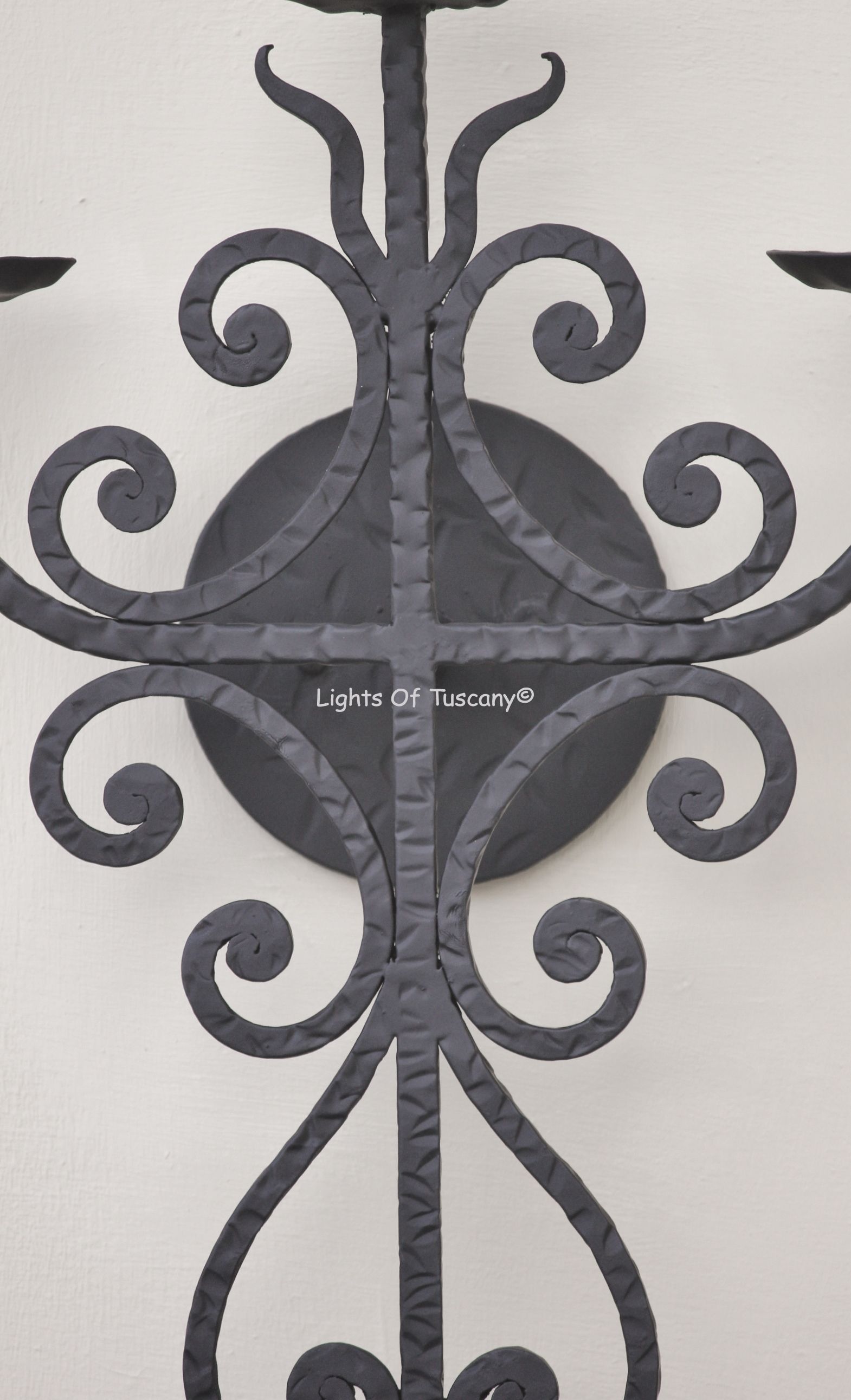 This beautiful hand crafted outdoor wall light is made of all authentic hand forged wrought iron. All our fixtures are hand painted and available in any of our finish options. This fixture is perfect for garage lighting, outdoor walls, backyard and patio lighting.