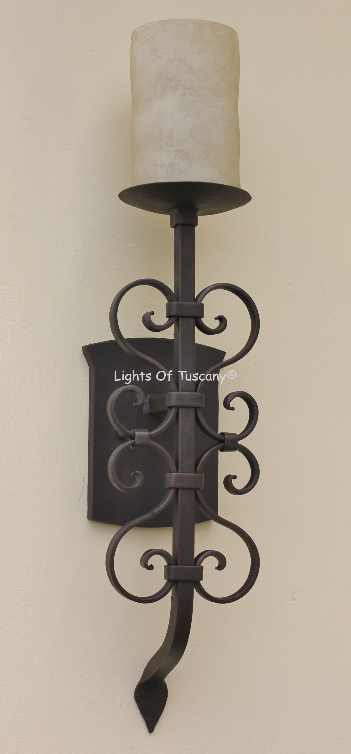 This beautiful hand crafted outdoor wall light is made of all authentic hand forged wrought iron. All our fixtures are hand painted and available in any of our finish options. This fixture is perfect for garage lighting, outdoor walls, backyard and patio lighting.