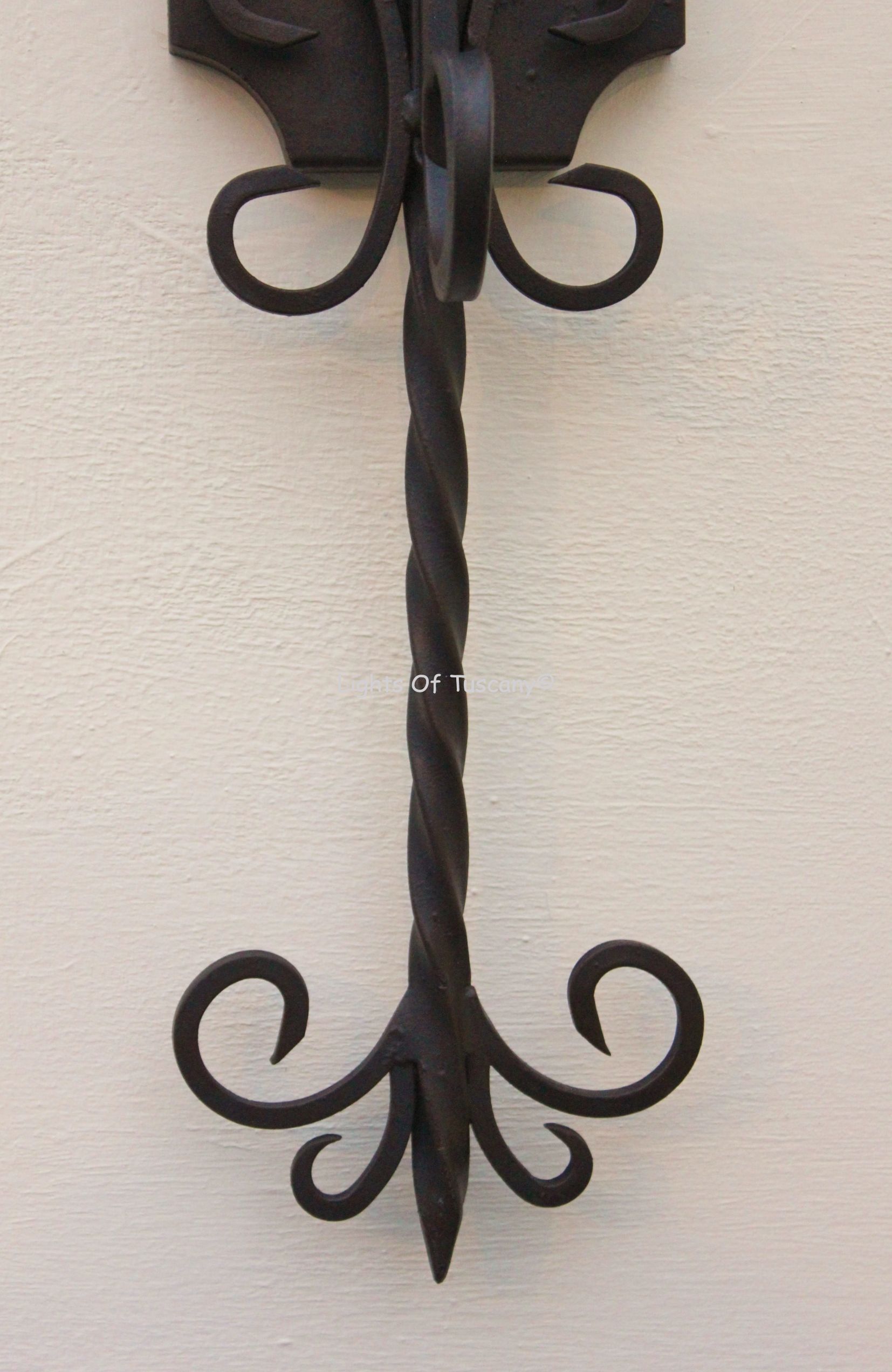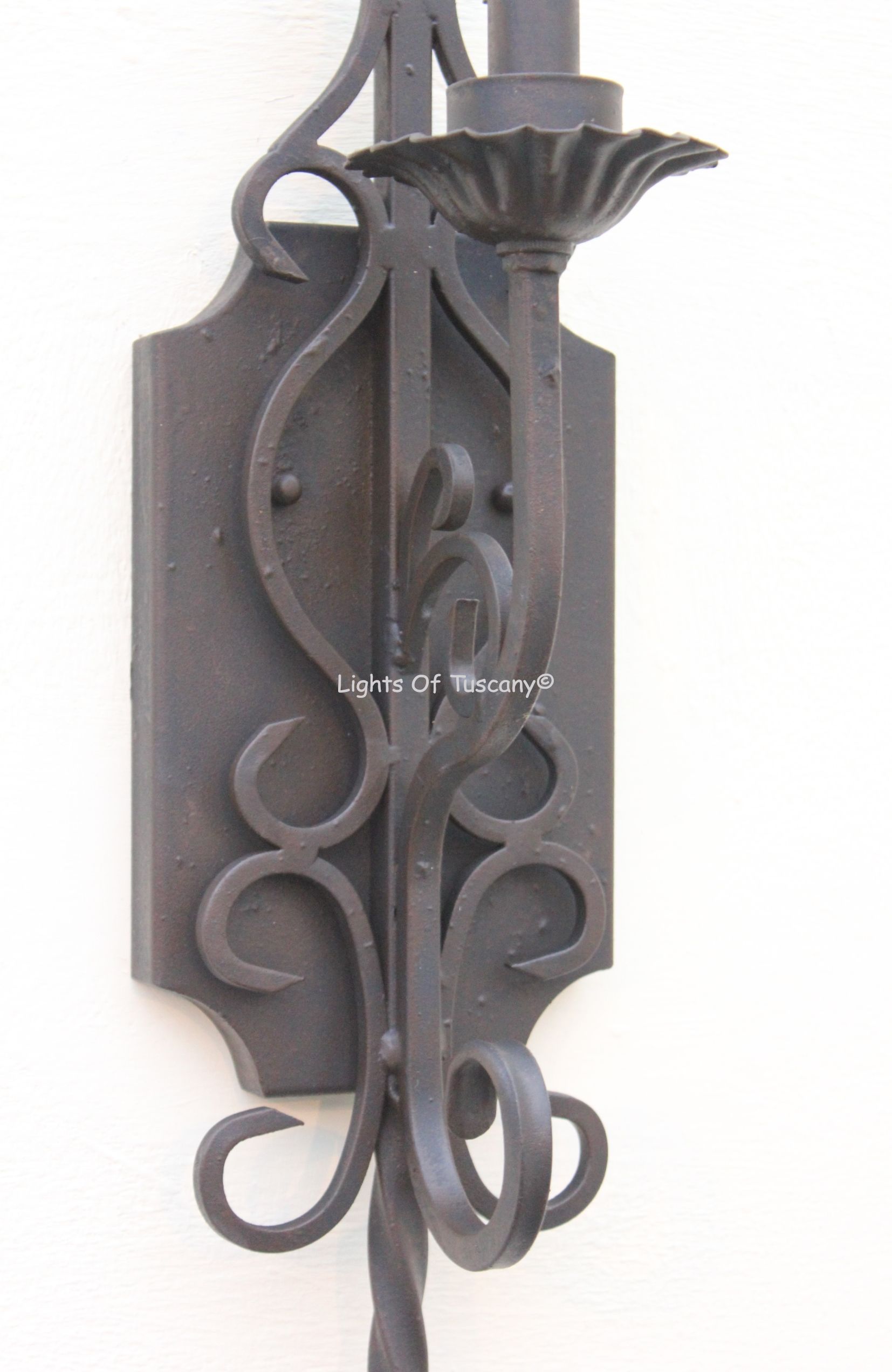 This beautiful hand crafted outdoor wall light is made of all authentic hand forged wrought iron. All our fixtures are hand painted and available in any of our finish options. This fixture is perfect for garage lighting, outdoor walls, backyard and patio lighting.