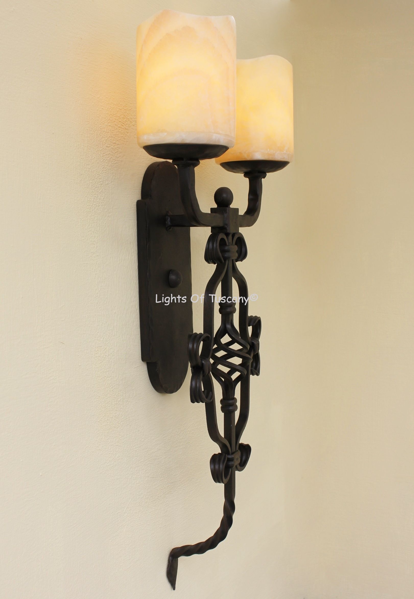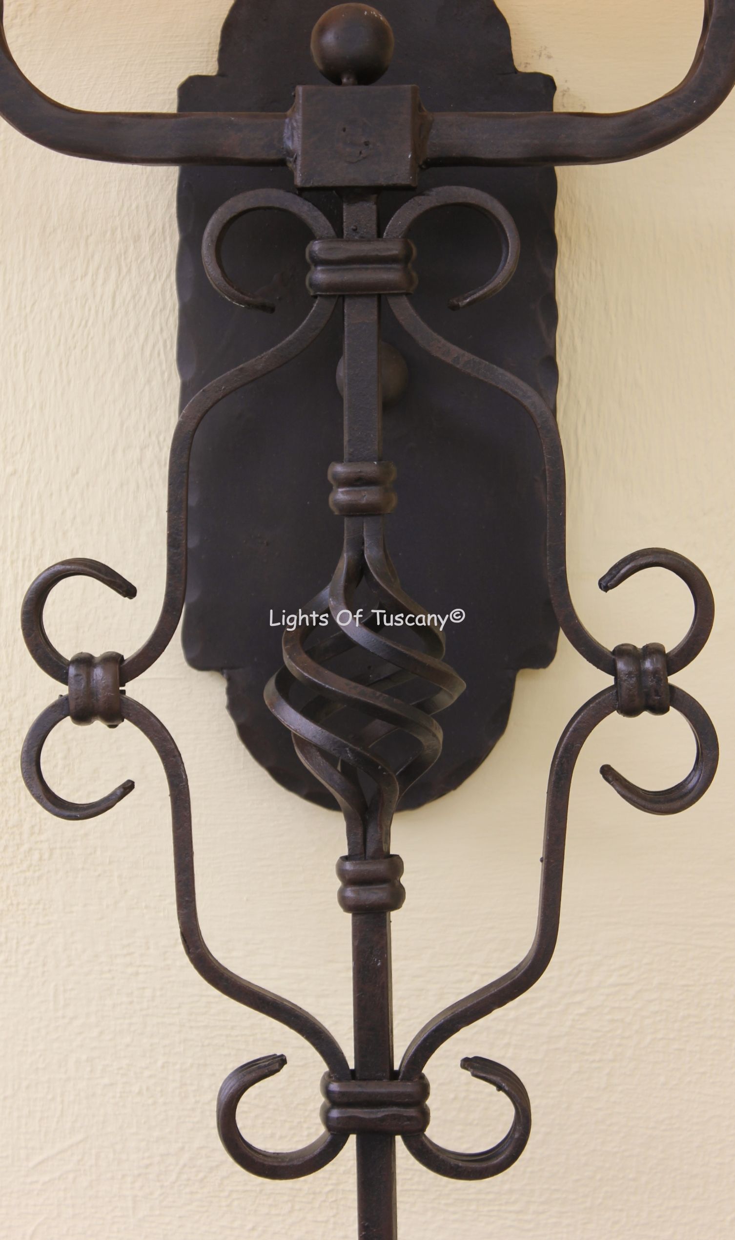 This beautiful hand crafted outdoor wall light is made of all authentic hand forged wrought iron. All our fixtures are hand painted and available in any of our finish options. This fixture is perfect for garage lighting, outdoor walls, backyard and patio lighting.