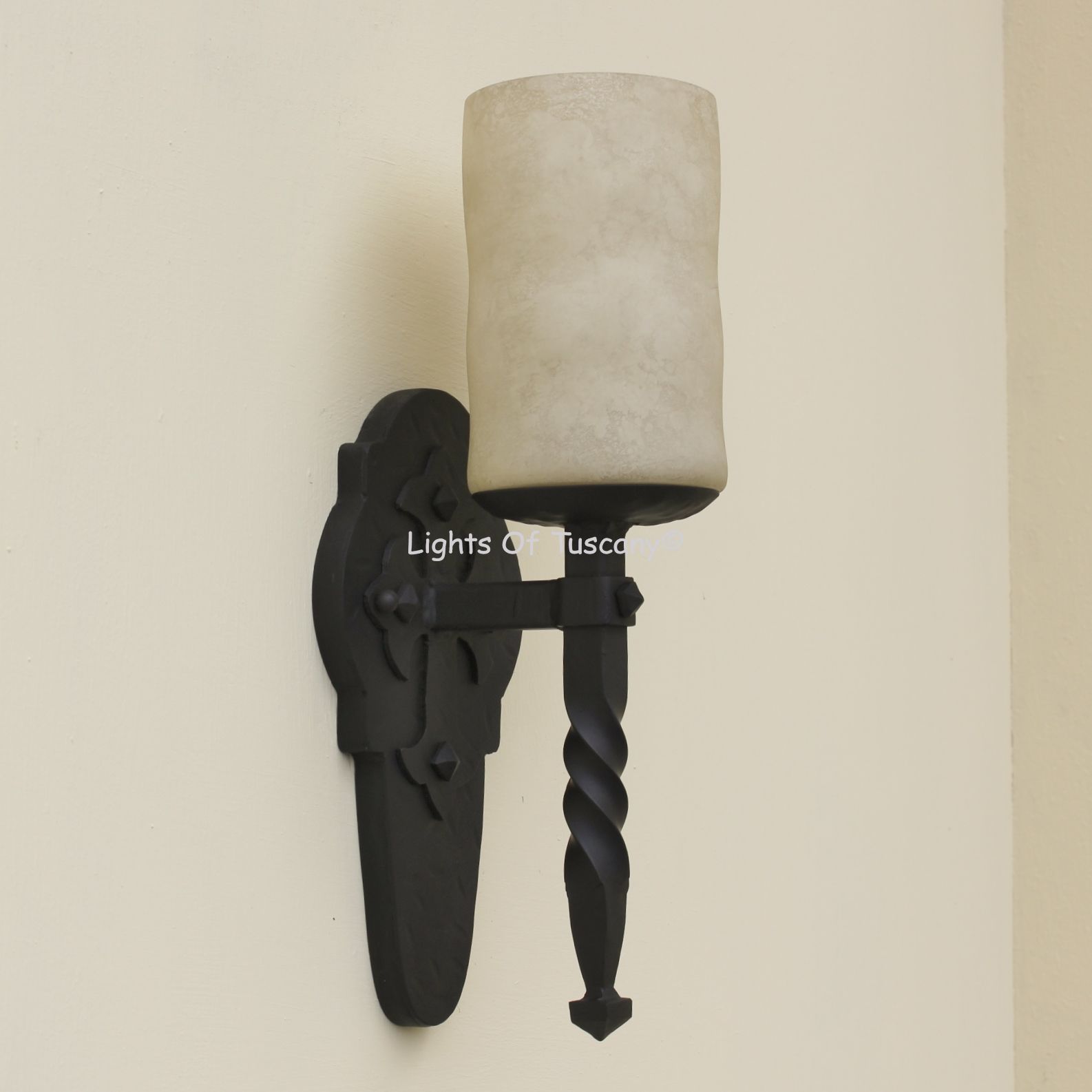 This beautiful hand crafted outdoor wall light is made of all authentic hand forged wrought iron. All our fixtures are hand painted and available in any of our finish options. This fixture is perfect for garage lighting, outdoor walls, backyard and patio lighting.