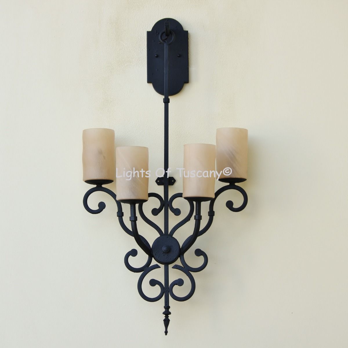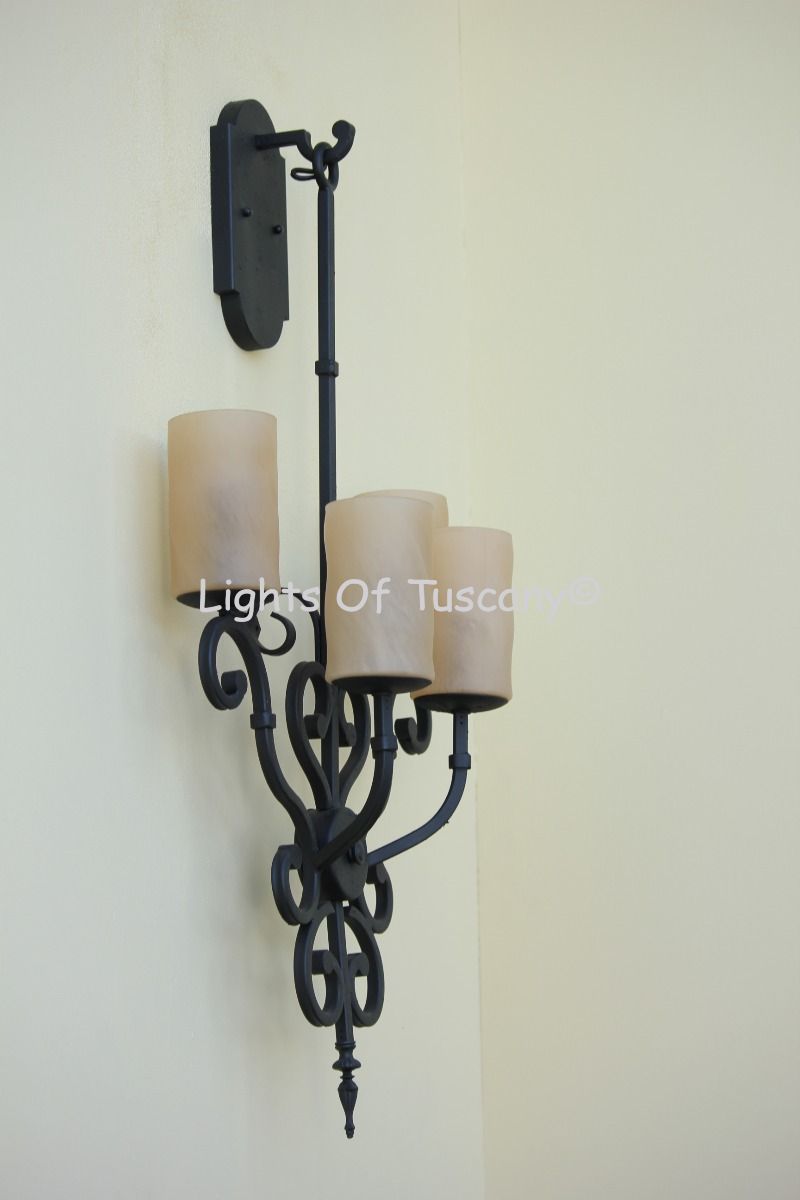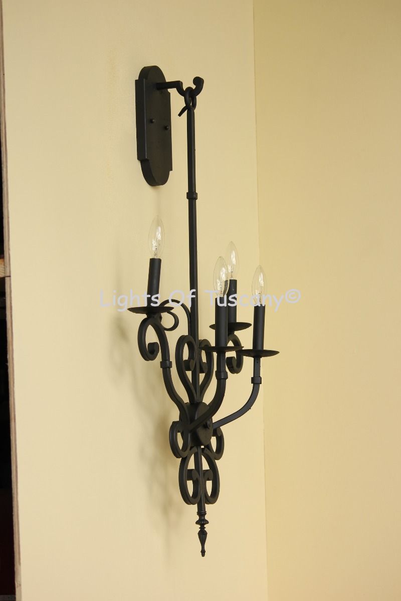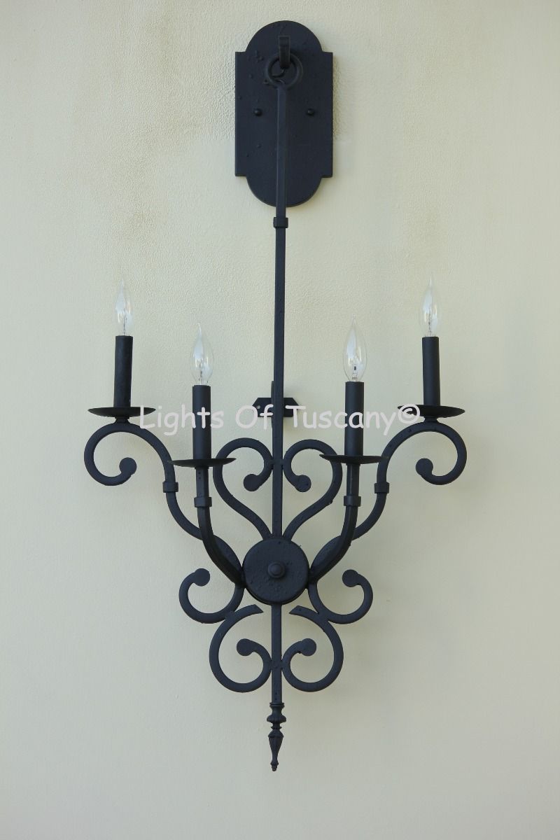 This beautiful hand crafted outdoor wall light is made of all authentic hand forged wrought iron. All our fixtures are hand painted and available in any of our finish options. This fixture is perfect for garage lighting, outdoor walls, backyard and patio lighting.