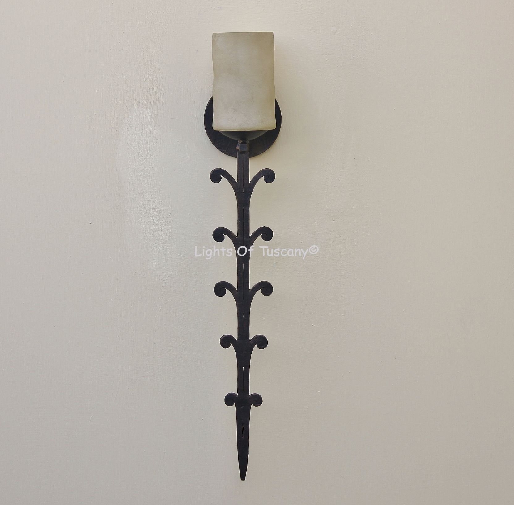 This beautiful wall sconce light is authentic hand forged wrought iron. Decorated with beautiful hand made iron accents. This fixture is perfect for hallways, bedside light, entryways, bathroom vanity lights, or any living space. _________________________________________________________________________