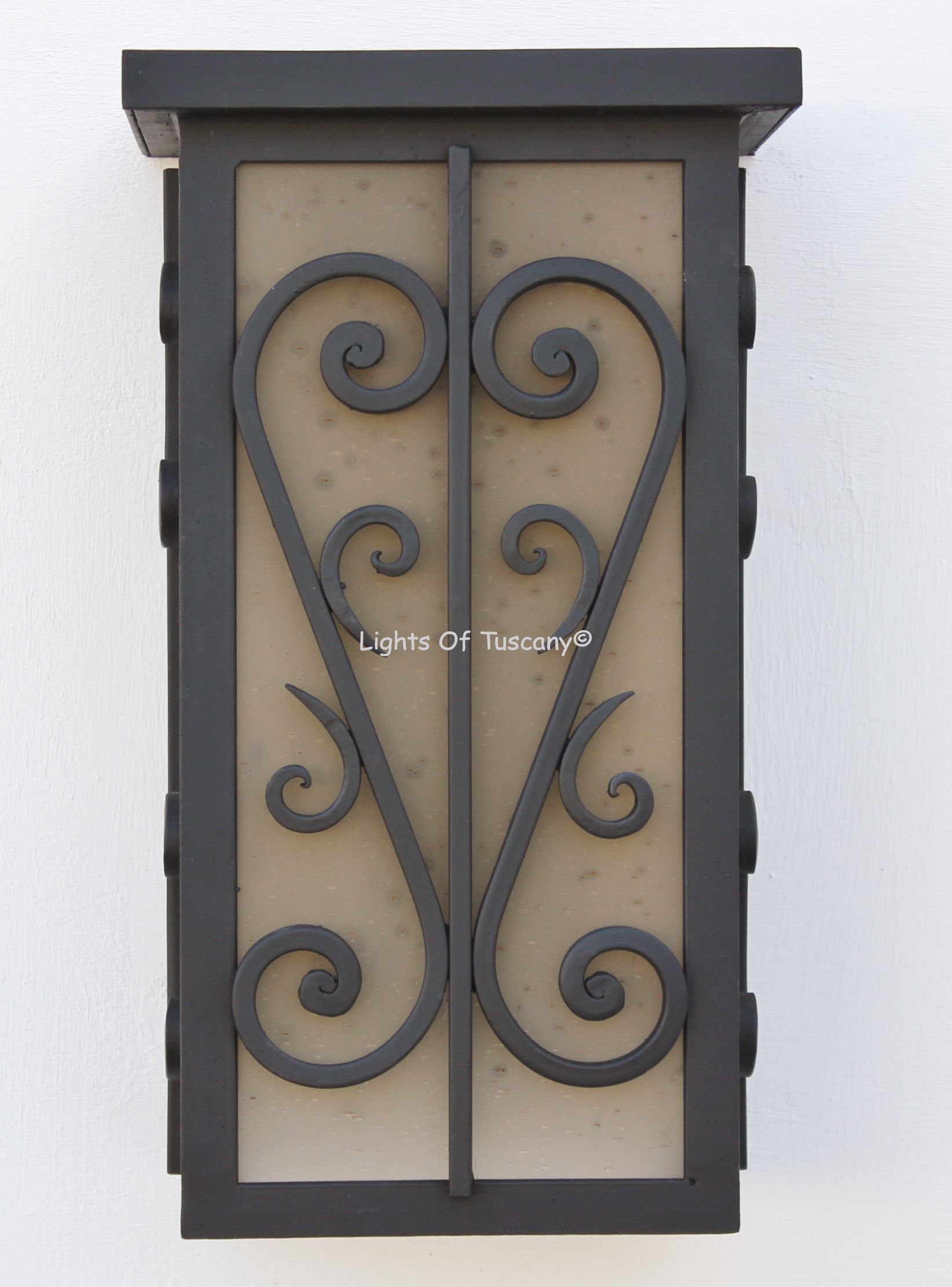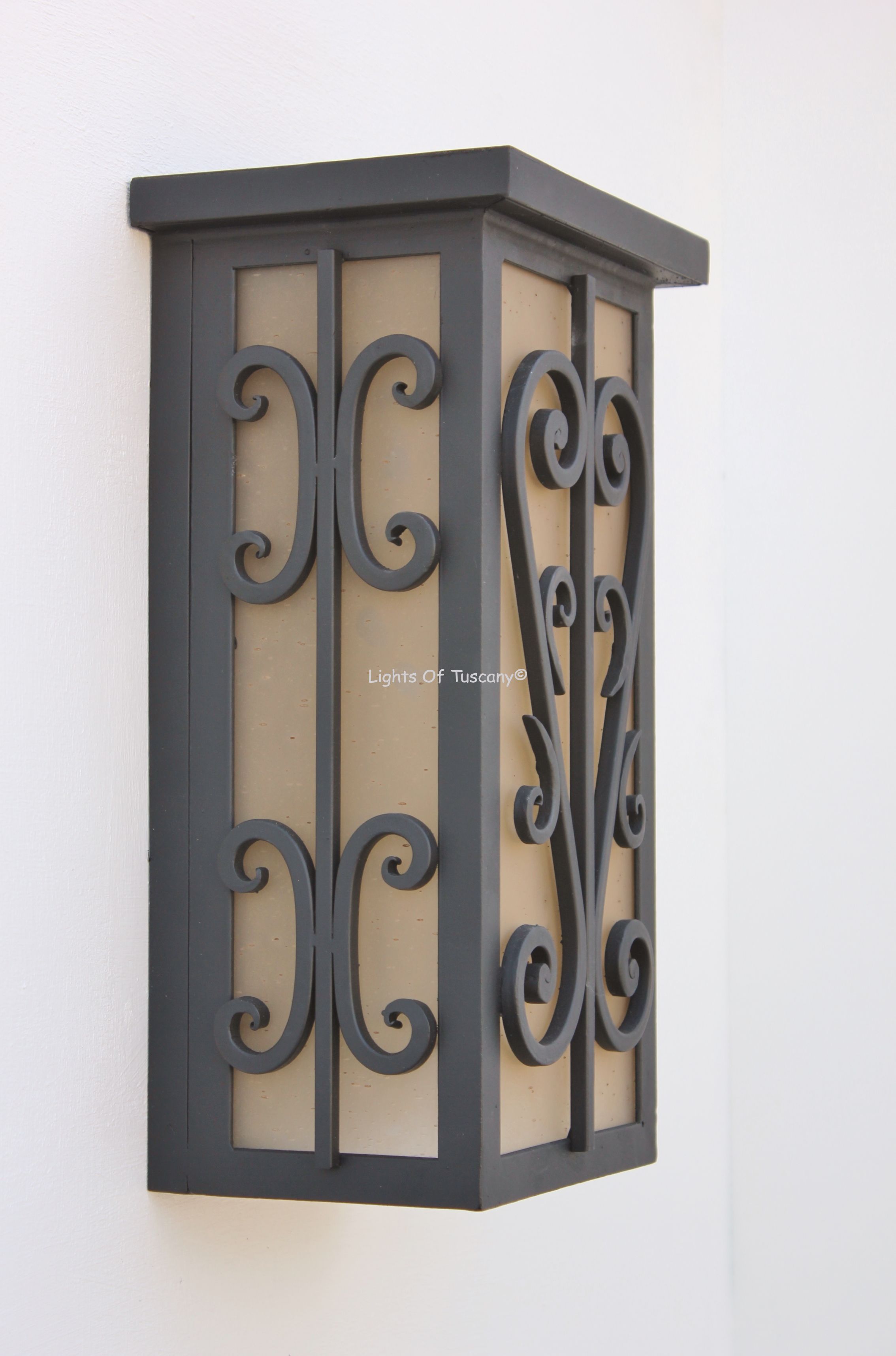 This beautiful hand crafted outdoor wall light is made of all authentic hand forged wrought iron. All our fixtures are hand painted and available in any of our finish options. This fixture is perfect for garage lighting, outdoor walls, backyard and patio lighting.
